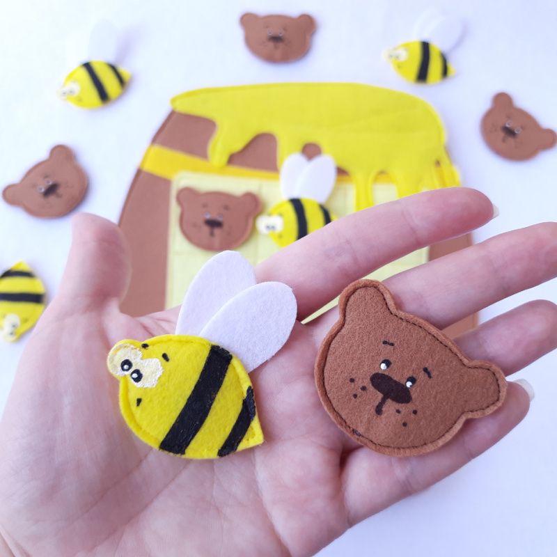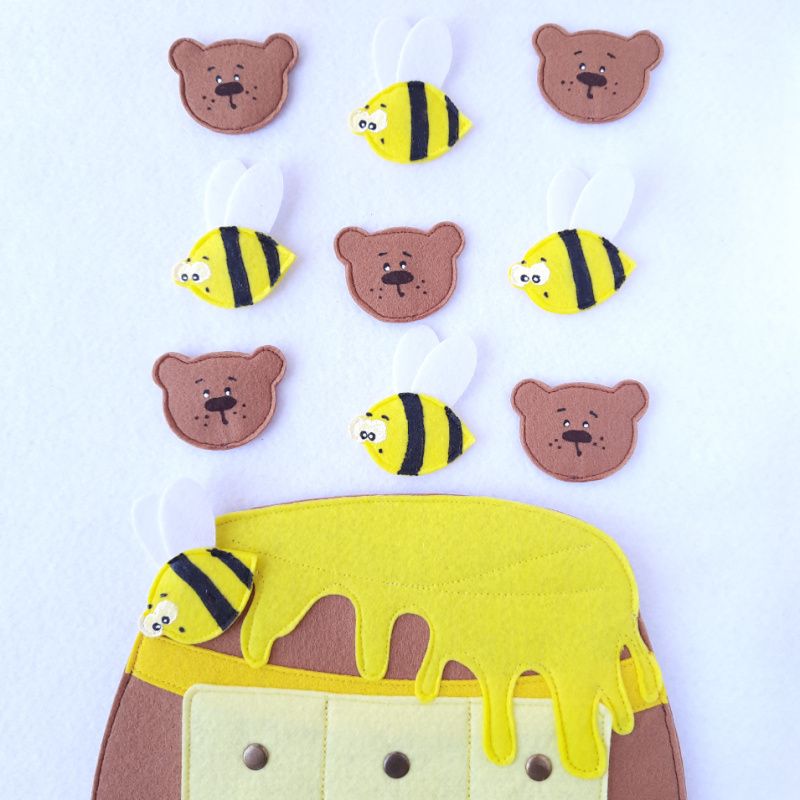 10 игровых элементов на магнитах (5 мишек и 5 пчёлок)