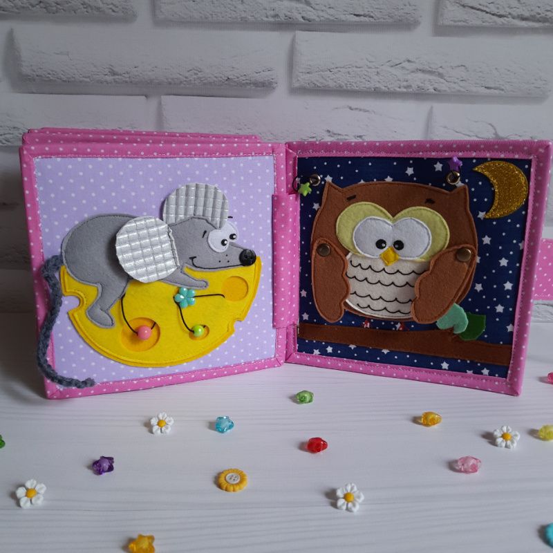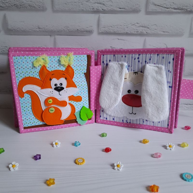 Развивающая книжка из ткани и фетра для самых маленьких. Тактильная книжка для развития мелкой моторики.