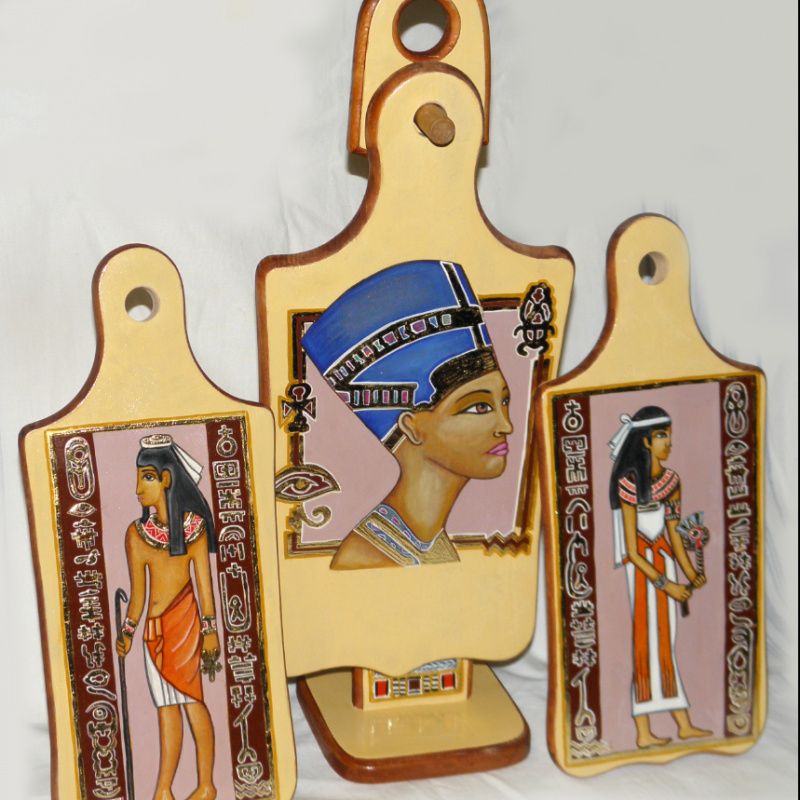Для любителей Египетских мотивов . Набор из трех досок на подставке. Ручная роспись с элементами золотой патали. Такой набор не только украсит вашу кухню, но он еще и функциональный.