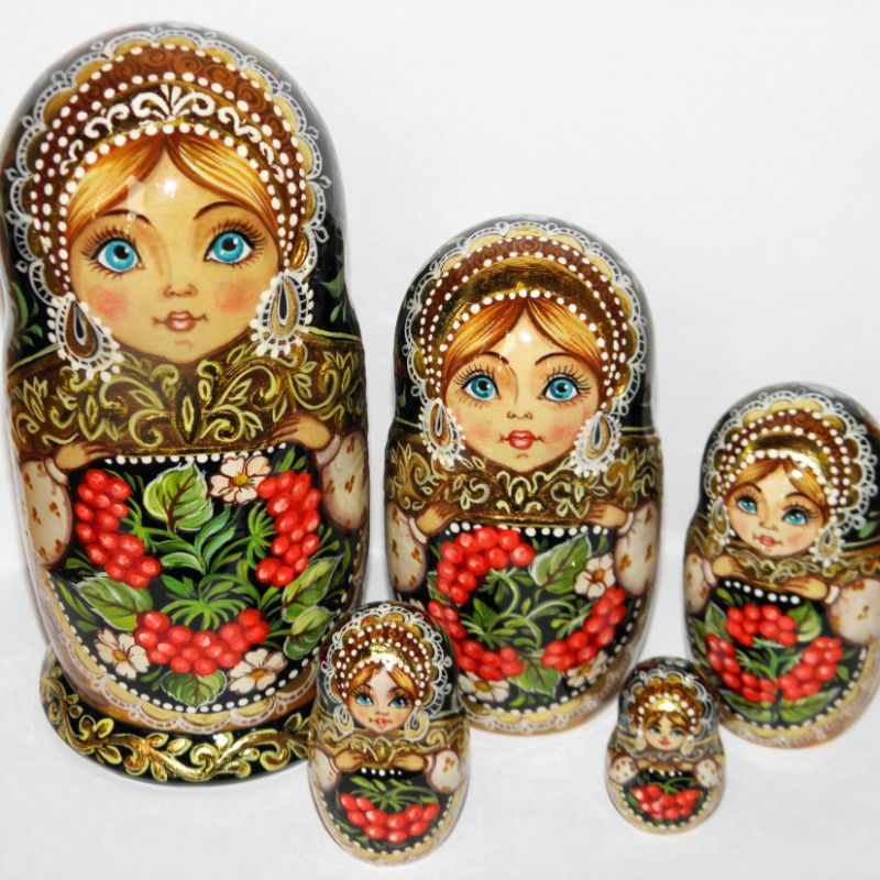 Матрешка 5 мест. Дерево липа, роспись гуашь, покрыта алкидным лаком.