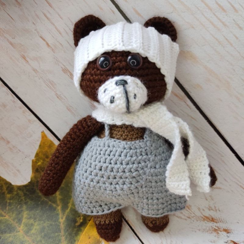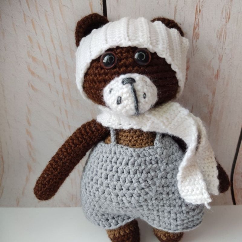 Медведь "Бруно" Малыш мишка в комбинезонах и шапочках. Этого медвежонка попросила связать моя дочь;) но он так мне понравился, что было решено добавить его в мой магазин. Шарфик, комбинезон и шапочка снимаются. Заказать одежду можно в любом цвете. А если хотите девочку – мишку, то конечно же я свяжу для нее праздничное платье.