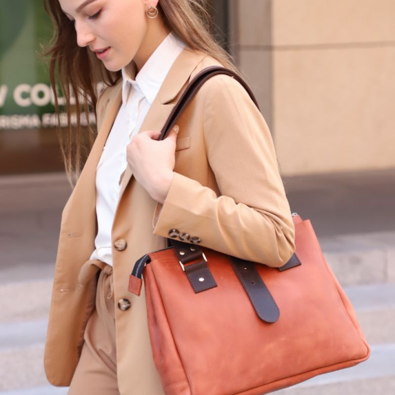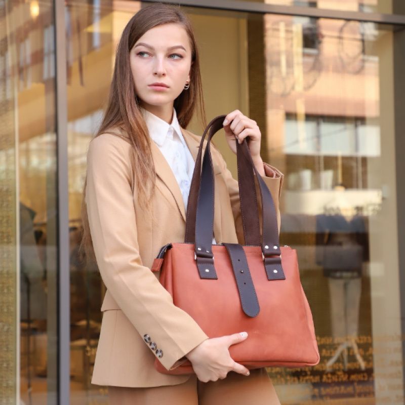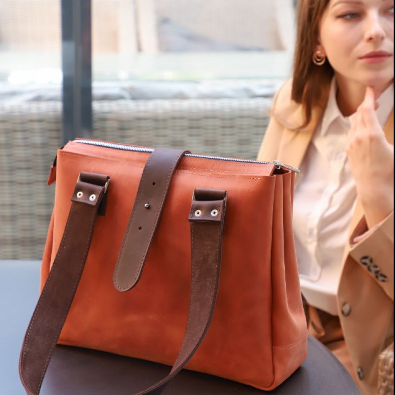 Кожаная Женская Сумка "TyBer" кожа Crazy Horse, цвет Коньяк
