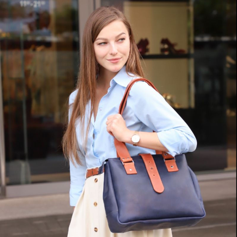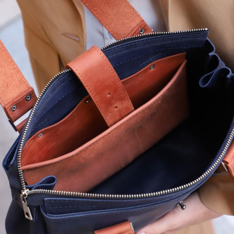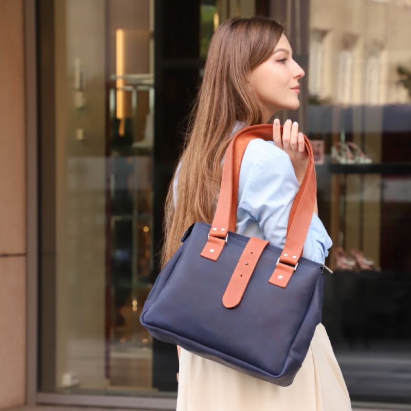 Кожаная Женская Сумка "TyBer" кожа Crazy Horse, цвет Синий