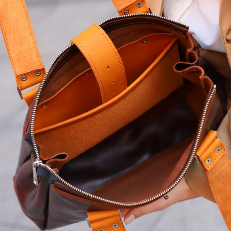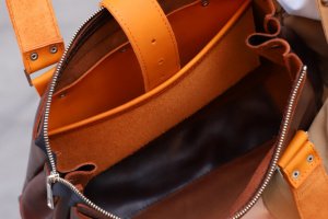 Основной отдел закрывается прочной вшитой молнии + сверху лямкой на бур. Внутри есть большой карман. Ремни двойные, прошитые, размер ручек 74 см.