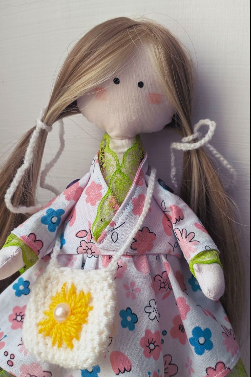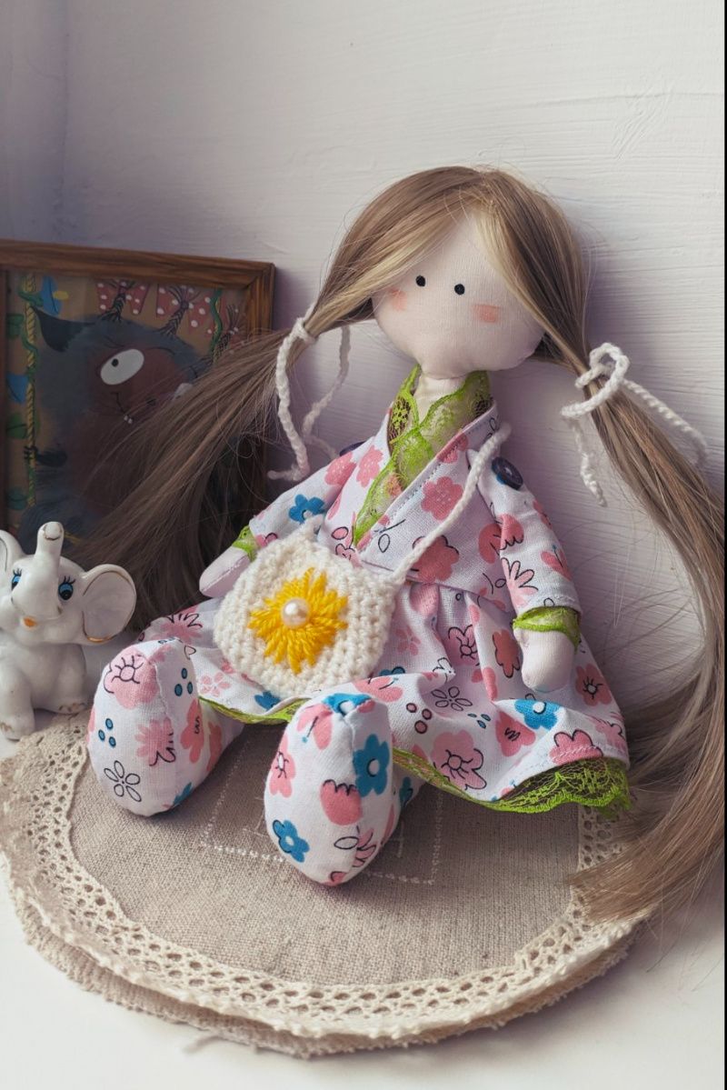 Лялька ручної роботи. Одяг не знімається. Волосся - штучні Треси.