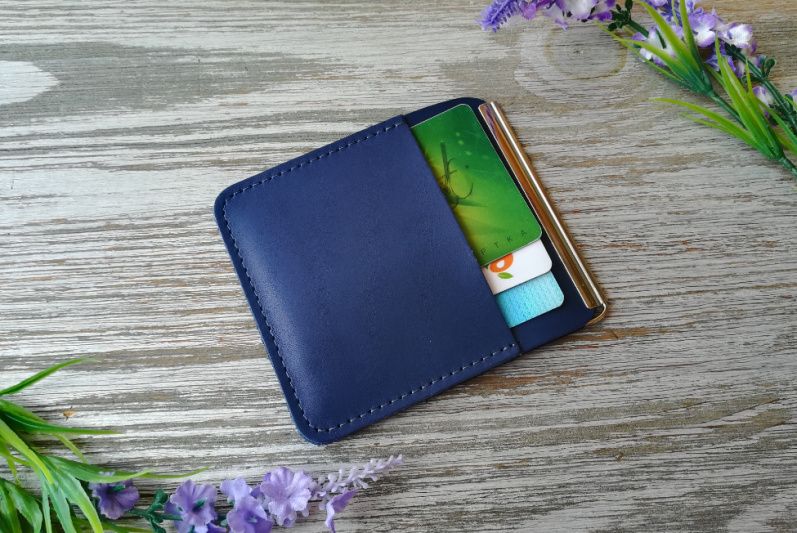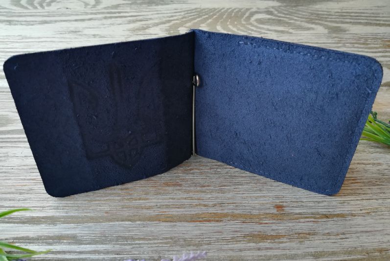 Зажим для денег из 100% кожи. Крепкий механизм для держания купюр. Идеально подходит для всех номиналов гривны и доллара. Сзади есть удобный кармашек для карточек