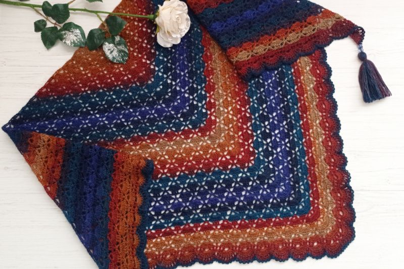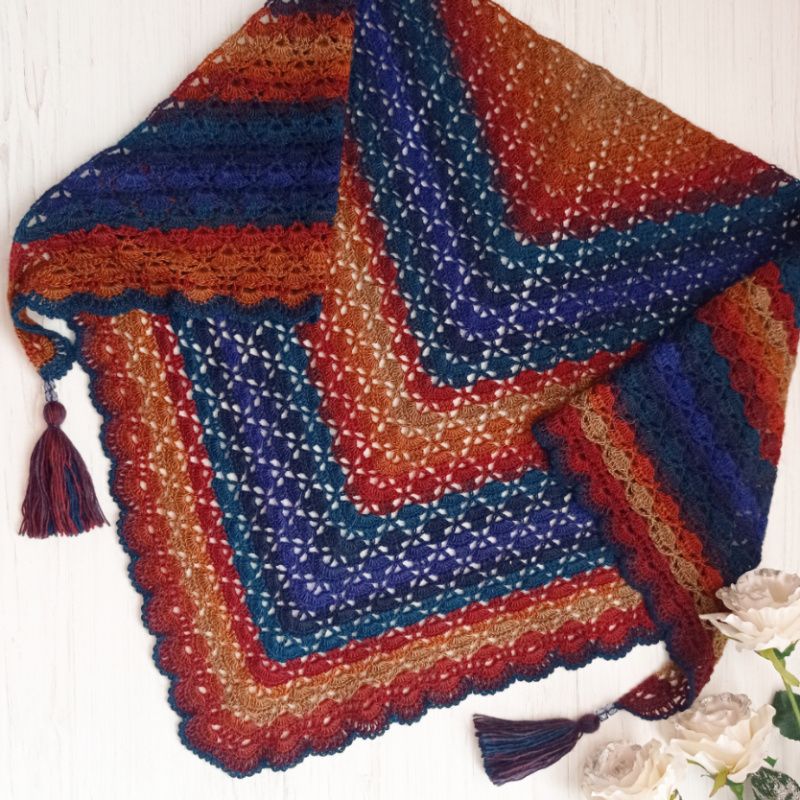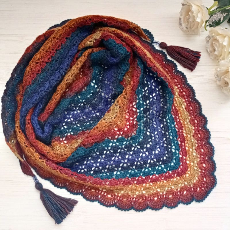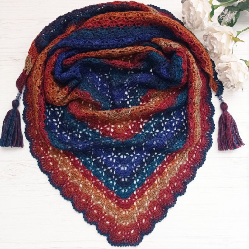 Модный,стильный бактус с красивым сочетанием цветов . Многоцветность бактуса всегда выгодна тем что его можно одеть под любой цвет одежды.
