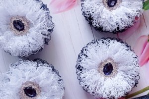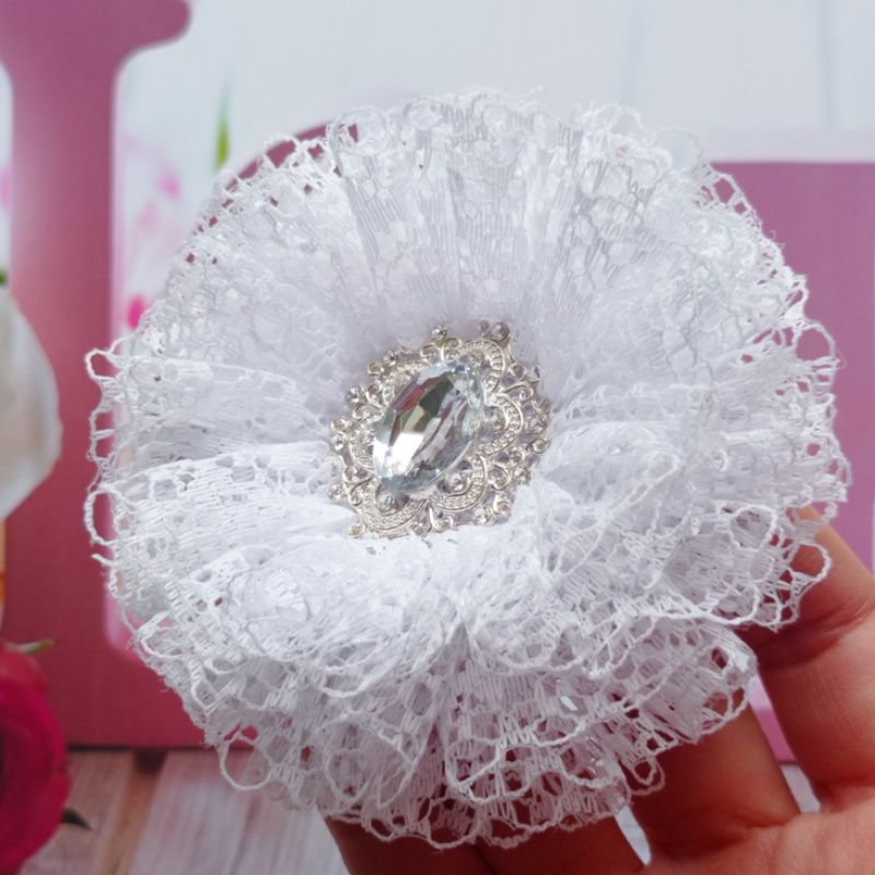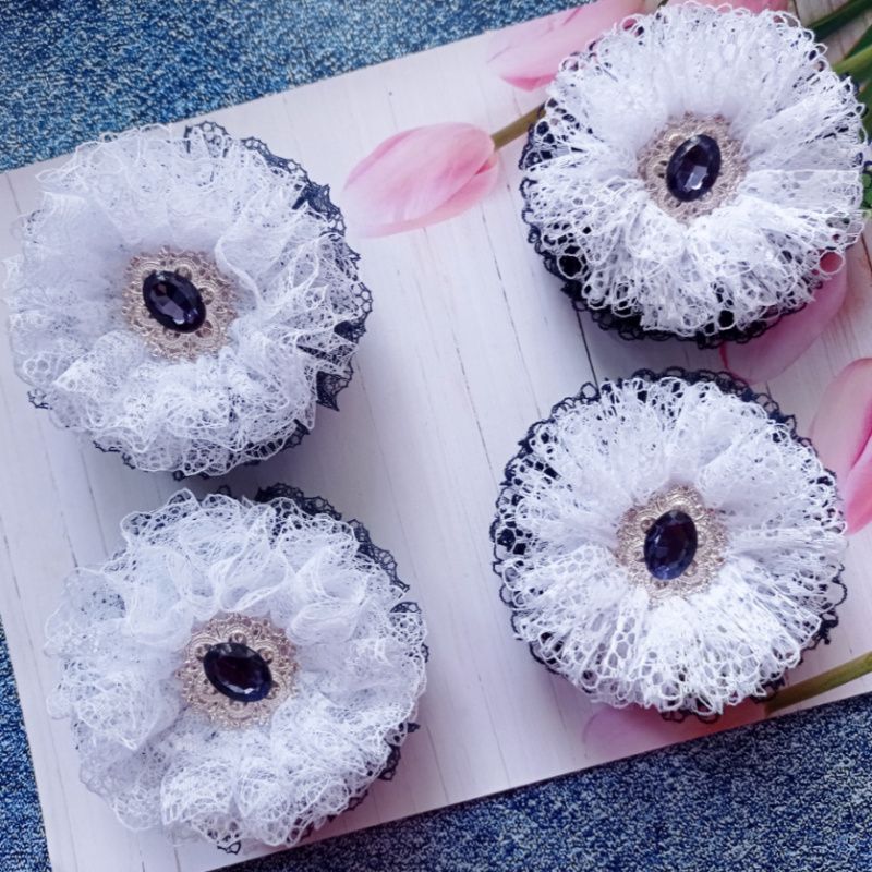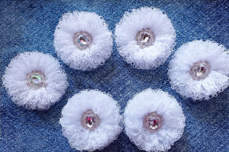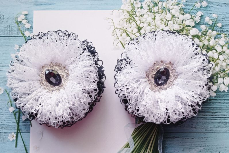 Нежные и воздушные бантики из кружева со стразовым декором.