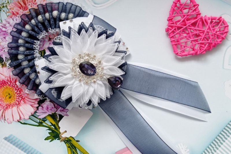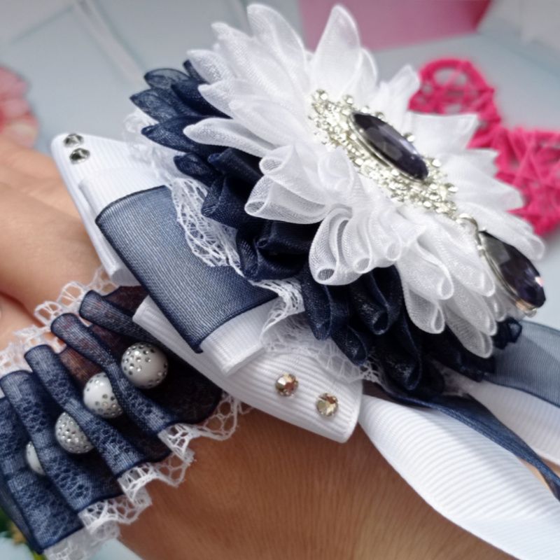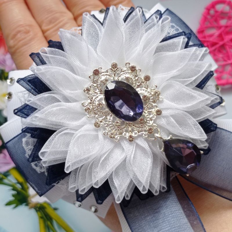 Легкая,воздушная и нарядная резинка на пучок ( гульку ) в школу на 1 Сентября. В сине-белом цвете фото 1-3