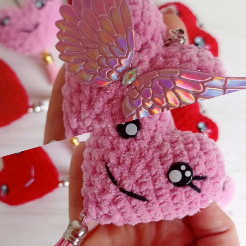 Украшено замшевой кисточкой, патчи крылья с перламутровым блеском, пришиты.