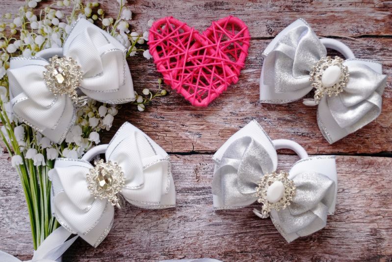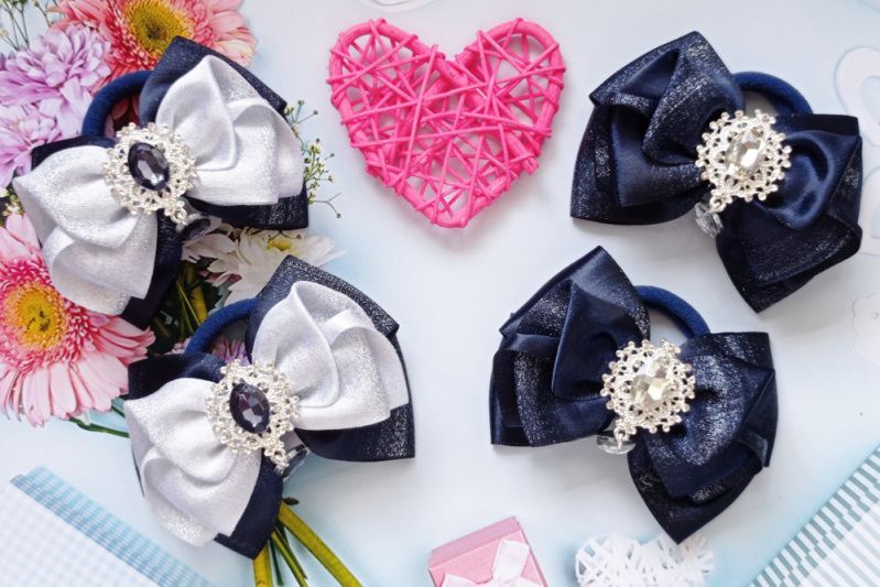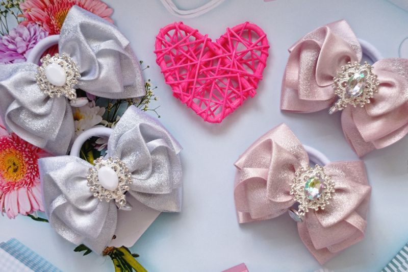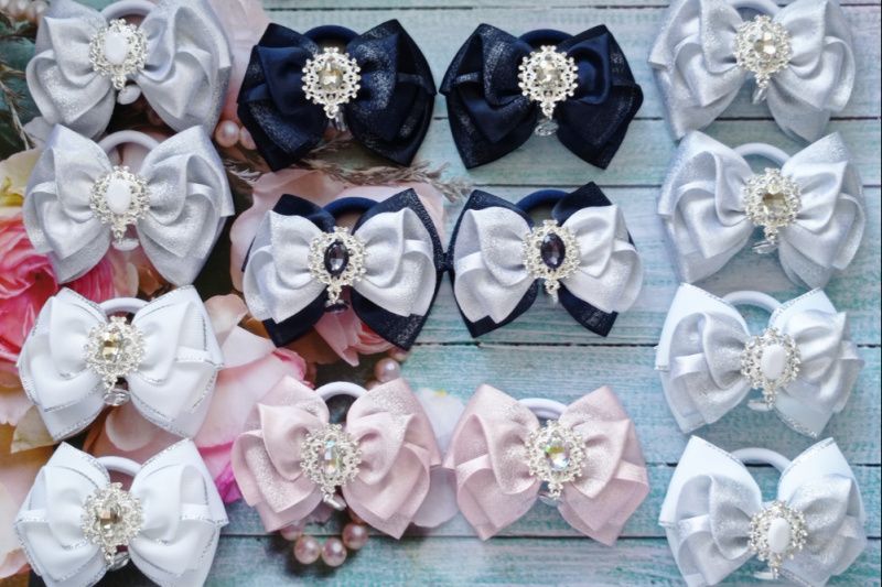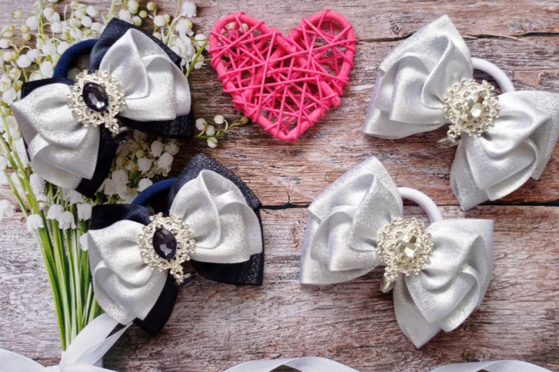 Нежные бантики из сатина вип класса с серебряным блеском.