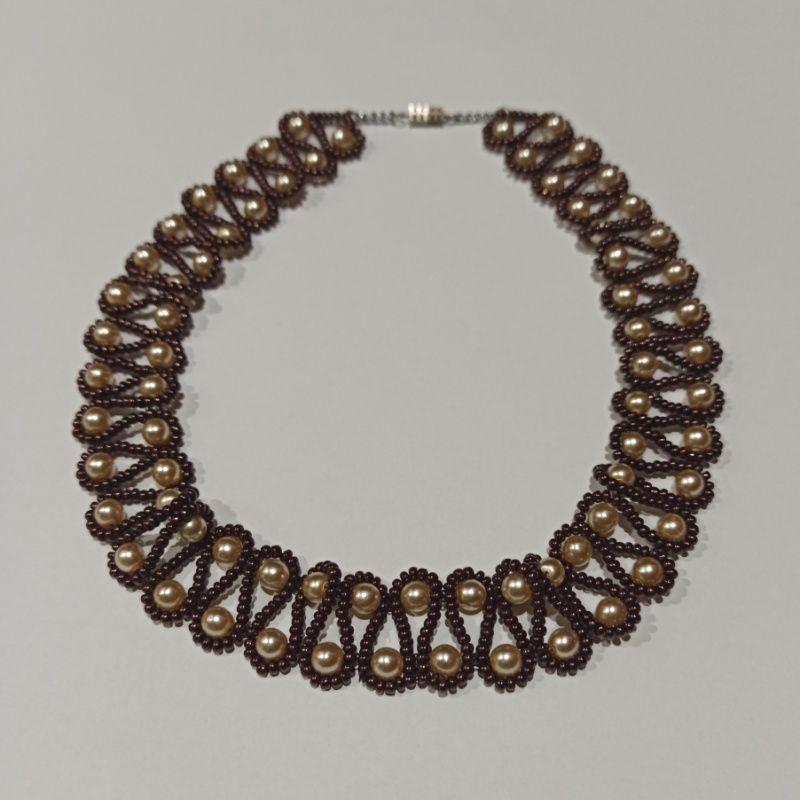 Колье из жемчужных бусин и бисера, красиво смотрится