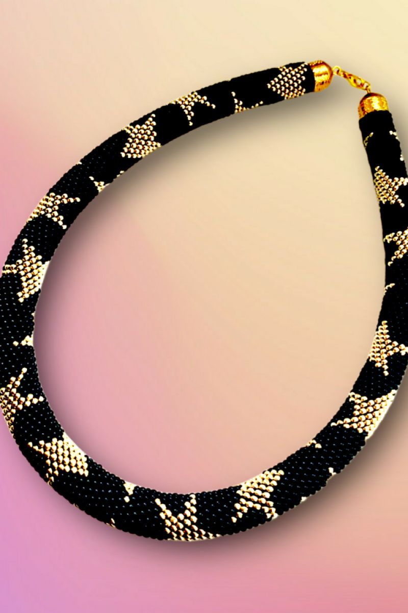 колье жгут с орнаментом звед, в диаметре около 1см. длина 42 см. По желанию сделаю дополнительные фото
