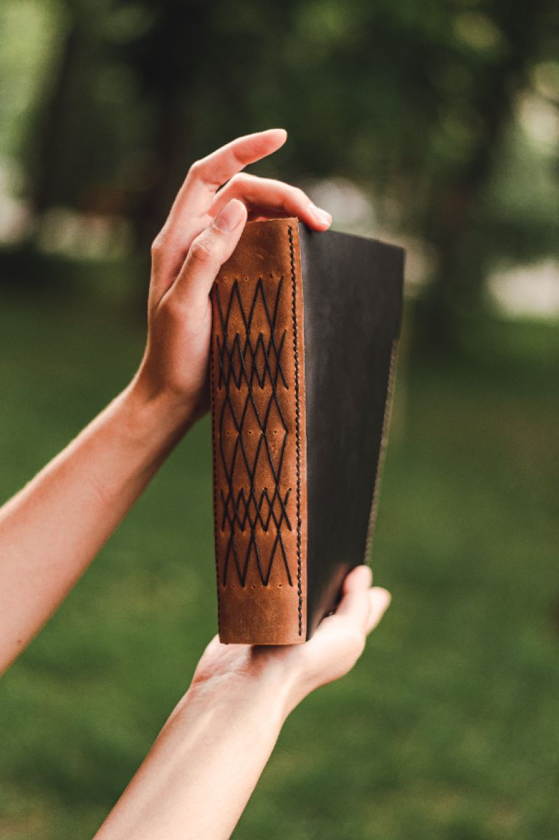 Кожаный блокнот формата А5, ориентировочно 15 * 21 см. Блокнот это не только полезный блокнот, но и очень стильный аксессуар для повседневного пользования. Это долговечный блокнот, поскольку кожаная обложка - долговечный материал и выносливый к повреждениям. Чем больше им пользуешься - тем интереснее и винтажниший вид он приобретает. Кожаный блокнот в подарок - точно покорит ваше сердце. Себе или друзьям - равнодушным не останется никто! Ручная работа обеспечивает изделие душой мастера, поэтому получается, вы покупаете очень особенную вещь, в которой полно положительной энергетики! Записывать планы, вклеивать фотографии или рисовать - блокнот выдержит все, что вы пожелаете. Характеристики: - формат А5 - 100 листов (200 страниц) - 120 г / м цупкисть бумаги - обложка натуральная кожа - формат книги - вшита внутрь карман - декор: боковая прошивка Выбирайте только особые подарки для себя и близких!