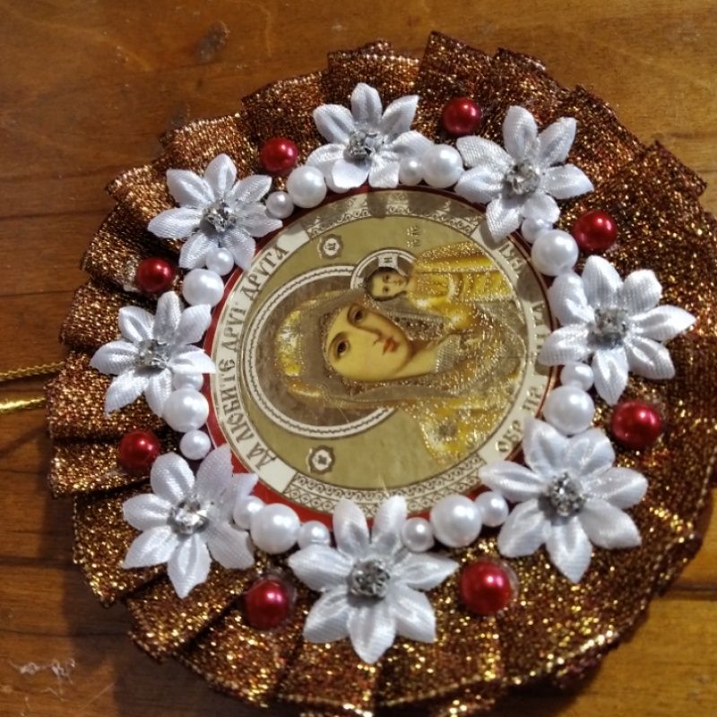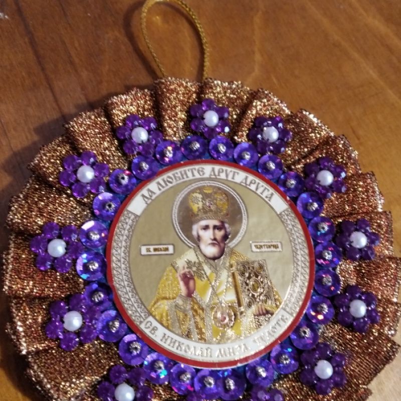 Иконки диаметром 10 см , на шнурочке. Можно повесить на входную дверь или возле рабочего стола. Вышита вручную . Возможны другие варианты оформления.