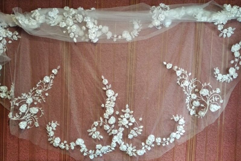 Деталь для свадебного платья, юбка-солнце. Вышивка на фатине . Диаметр 2'5 метра.