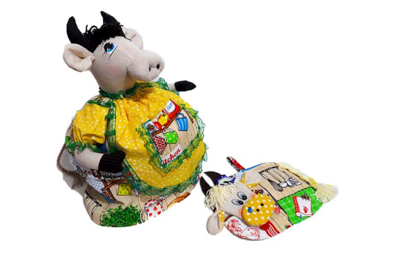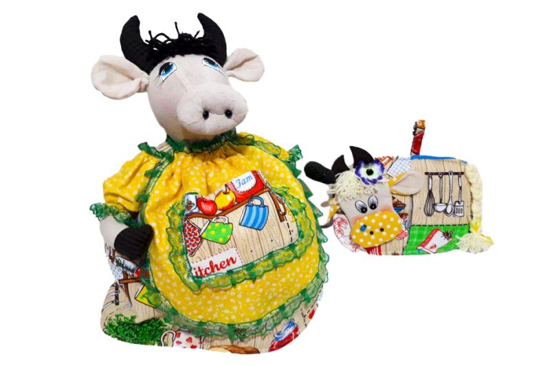 Набор состоит из двух предметов : грелка корова и прихватка корова.