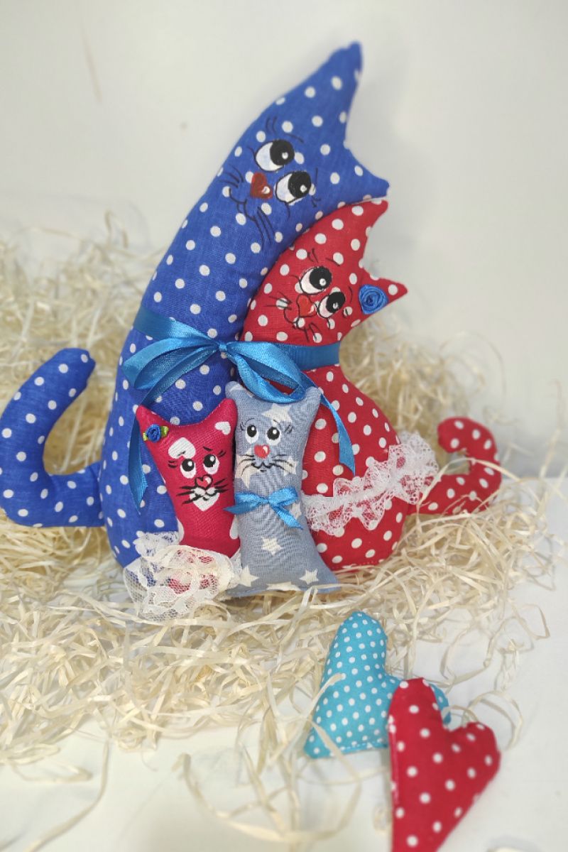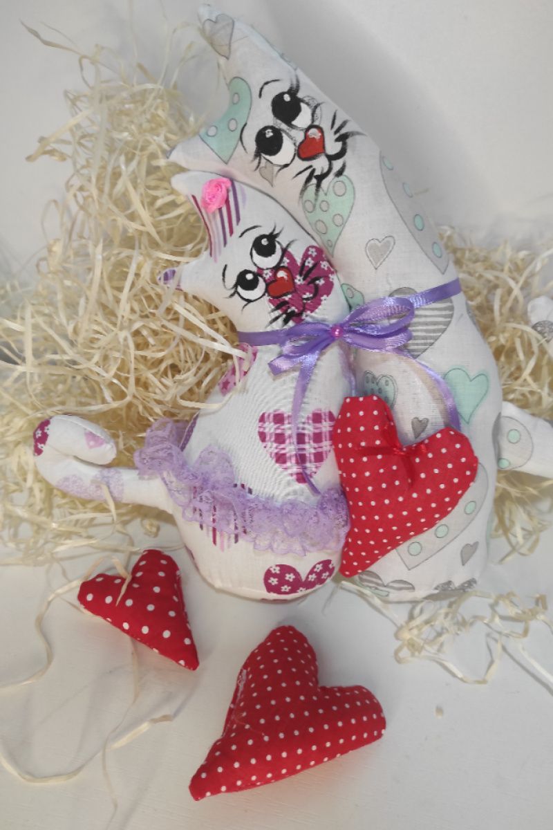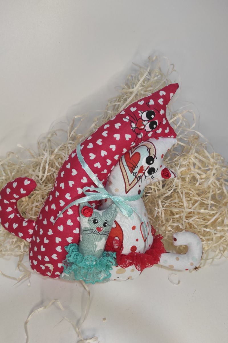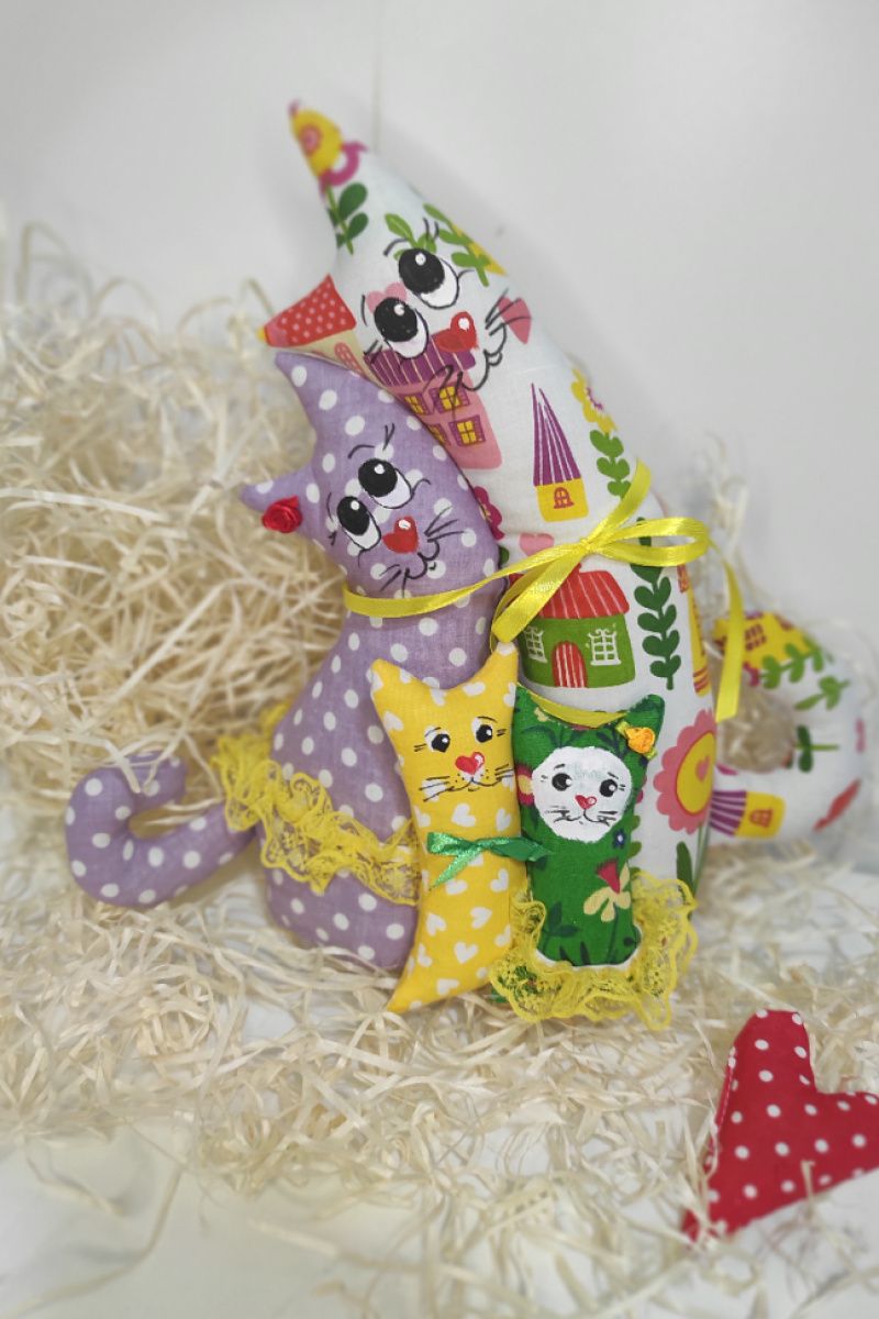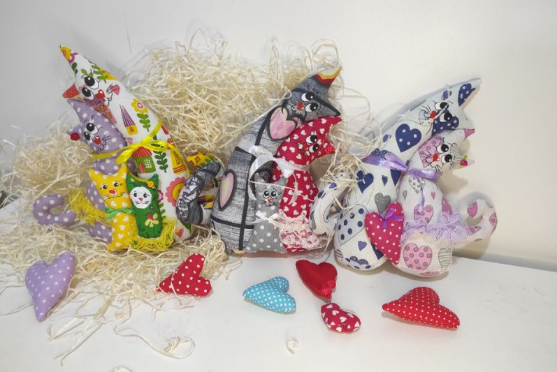 текстильные котики неразлучники. С сердечками, с одним малышом , с двумя детьми.