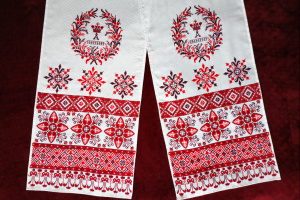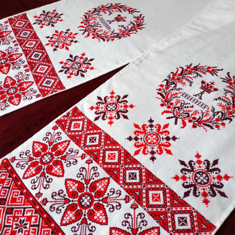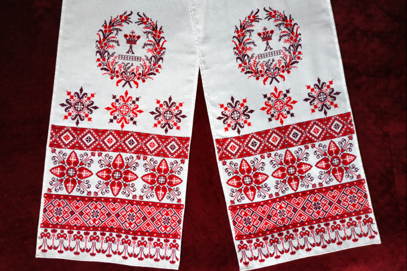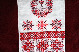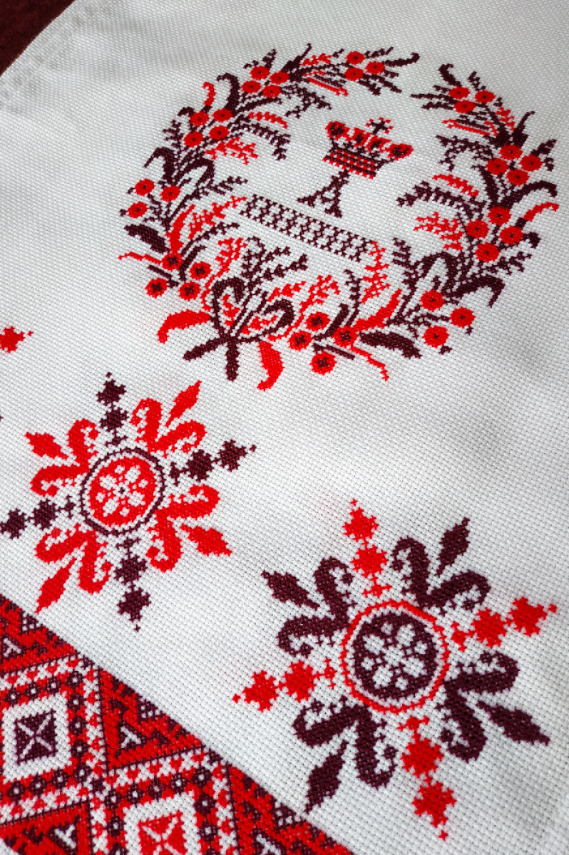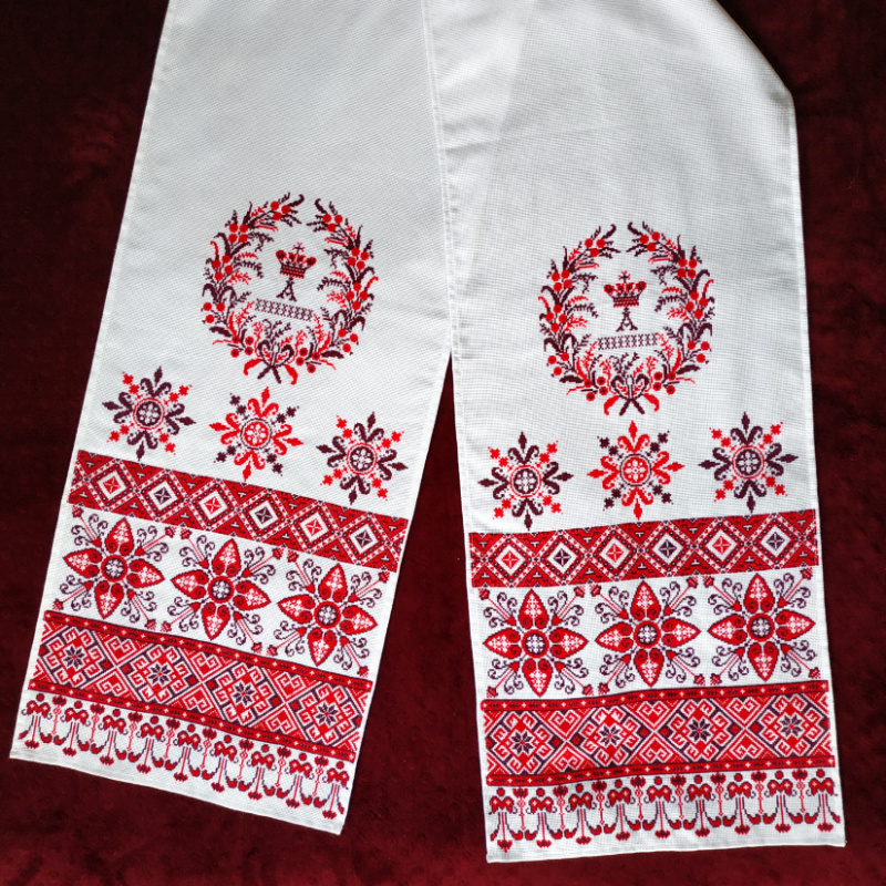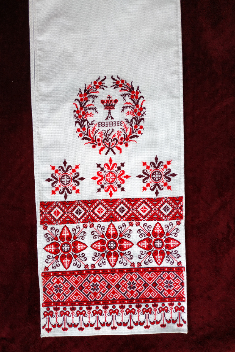 Полотенце продан. Возможно изготовление на заказ (срок 2-2,5 мес). Перед оформлением заказа - обязательно пишите для обсуждения деталей. Очень красивый свадебный рушник. Ручная работа. Вышитый нитками мулине Размеры: длина - 230 см ширина - 36 см высота узора - по 73 см с каждой стороны
