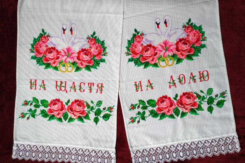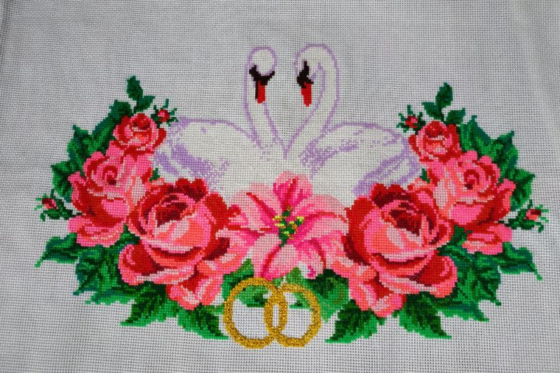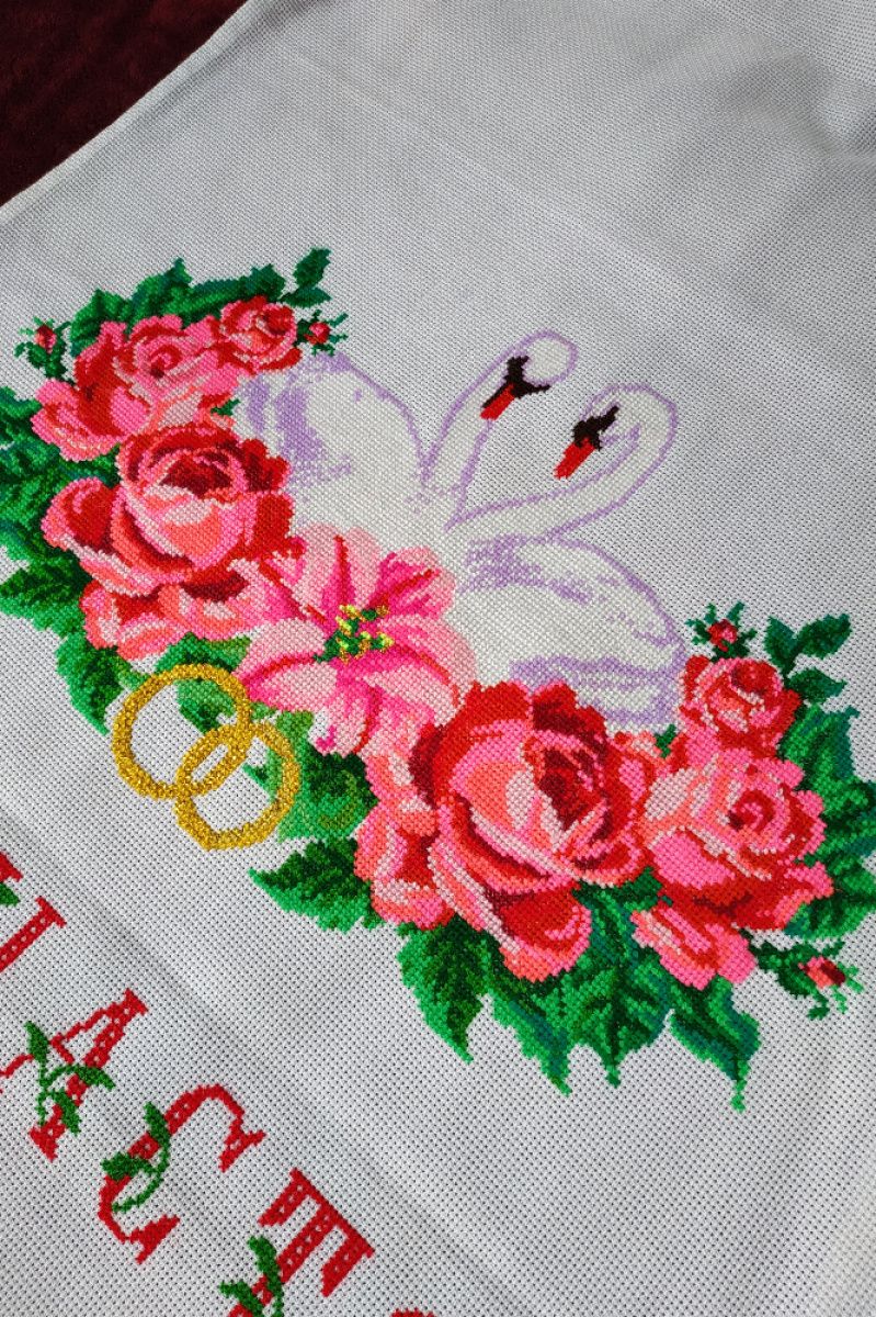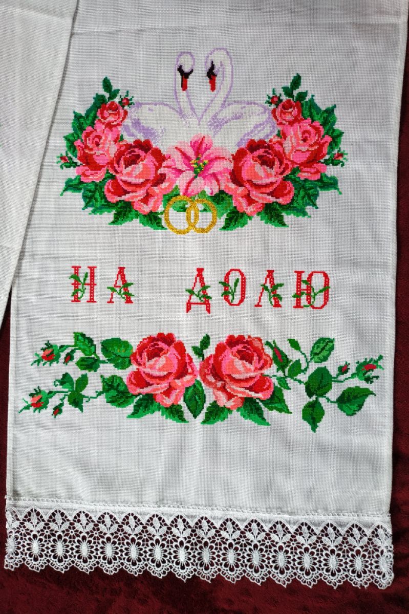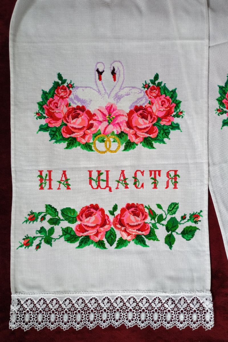 Очень красивый свадебный рушник. Ручная работа Вышитая на канве нитками. Полностью ручная вышивка Лебеди - символ семьи, любви и мира. Роза - один из самых популярных орнаментов вышивки, которые символизируют плодородие и возрождение. Лилия - символ непорочности, обаяния и чистоты. Размеры: длина - 219 см ширина - 40,5 см
