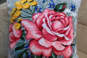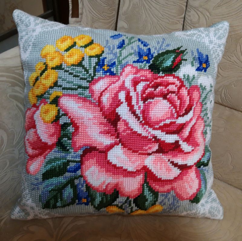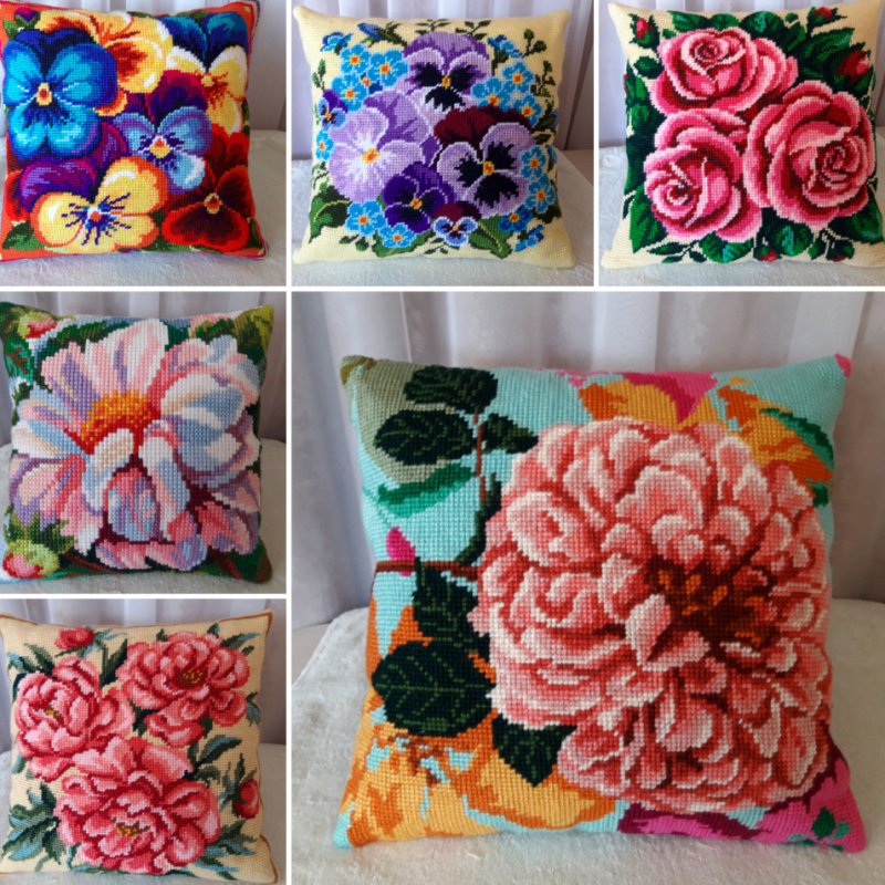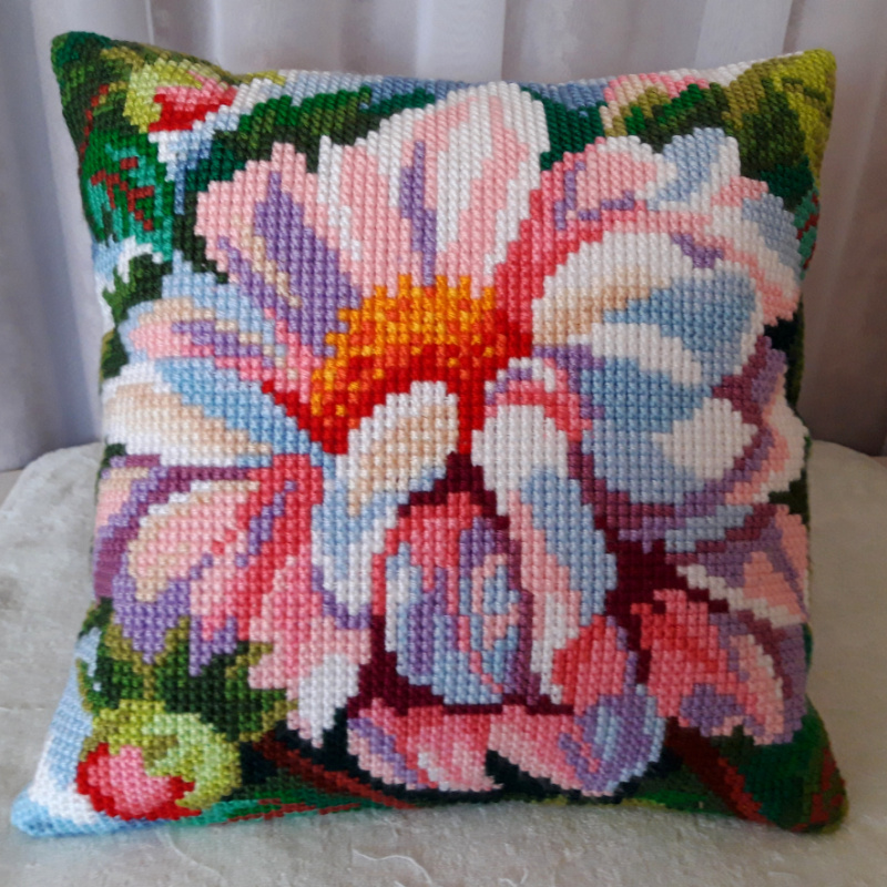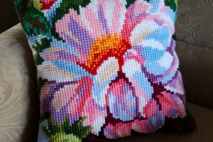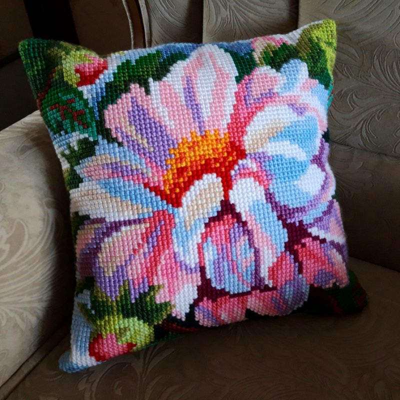 Подушечка вышита крестом Жоржин, на стромине Германия, акриловыми нитями, обратная сторона, декоративная ткань на молнии.