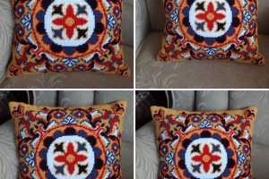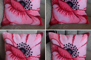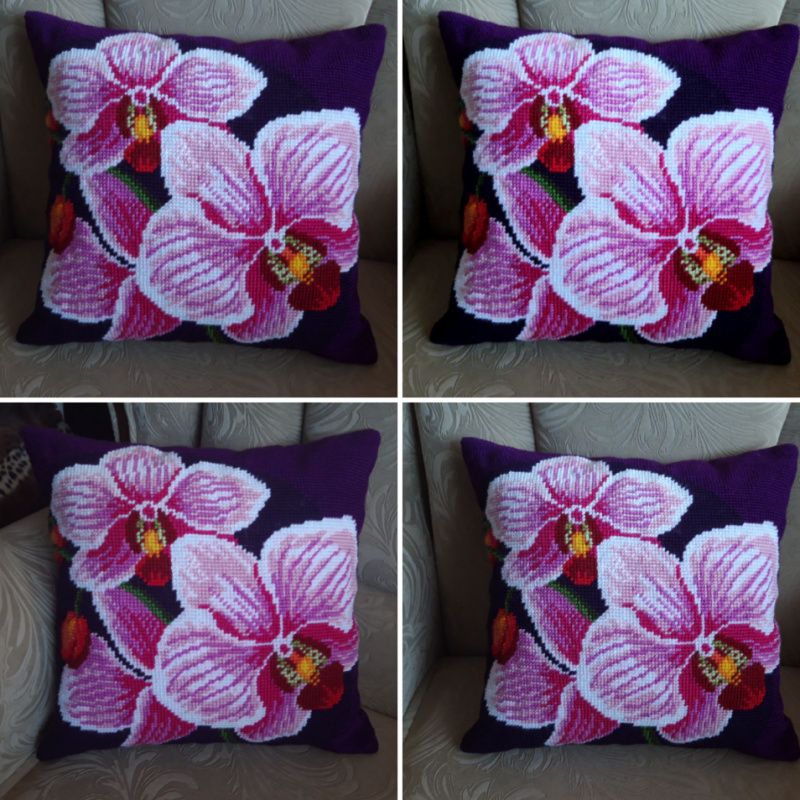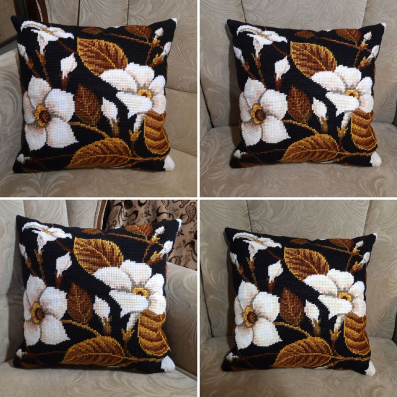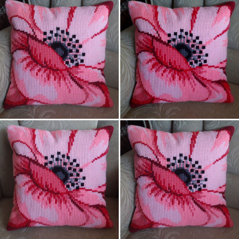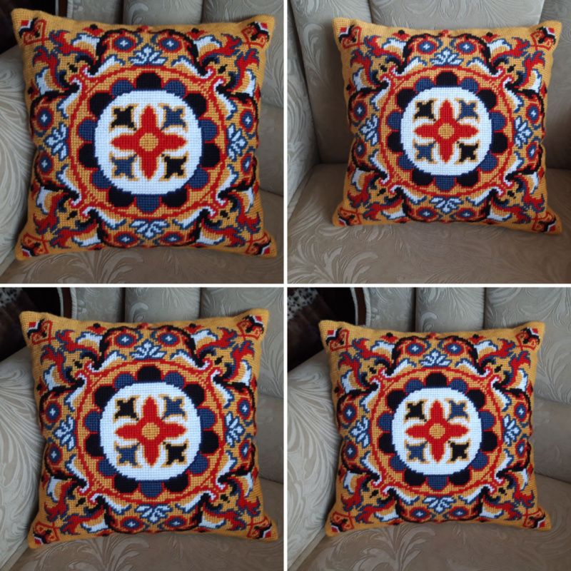 Подушка декоративная вышитая полукрестом на страмине акрыловыми нитками, красивые насыщенные цвета, оборот на молнии, внутри подушечка с наполнителем, подушка хорошо стирается , цвета не линяют и не выгорают, подойдет как подарок для родных или друзей