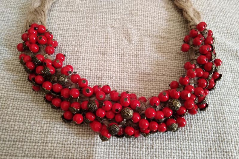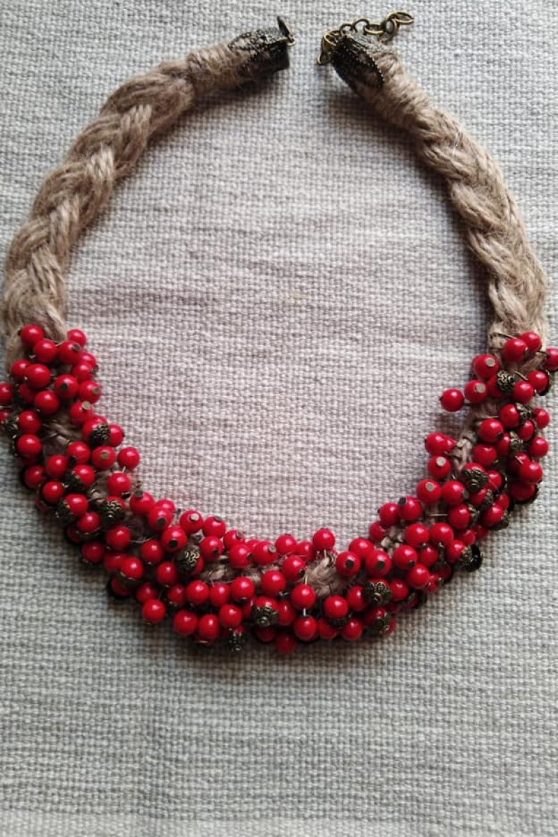 Сегодня украшения в этно стиле не сдают своих позиций, а даже наоборот: становятся все более и более популярными. Разумеется, старые традиции не приходят в нашу современную жизнь неизменными. Ведь сегодня мастерицы дополняют этно украшения современными решениями. Колье "Этно" изготовлено из льняной нити, прессованных коралловых бусин и металлической фурнитуры.