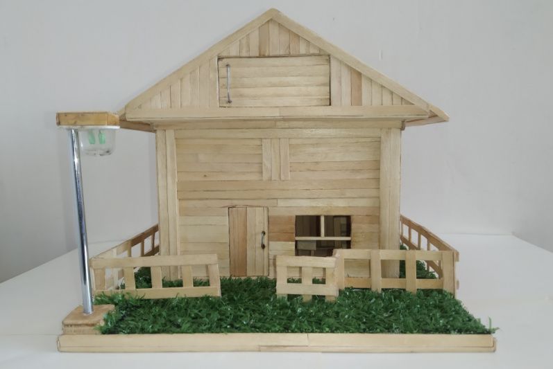 Домик - светильник, полностью ручная работа. Сделано из деревянных палочек, с помощью пистолета и клеевых палочек. Фонарь горит зеленым цветом, свет в доме белого цвета (мощный) диод 3.2 вольта. В подарок идет аккумулятор. Домик очень прочный, проверял. Очень красиво выглядит, создает уют в квартире. Если хотите удивить своего близкого человека, тогда подарите мой домик - светильник. Красивая вещь сделана от чистого сердца. Произведенный в единственном варианте
