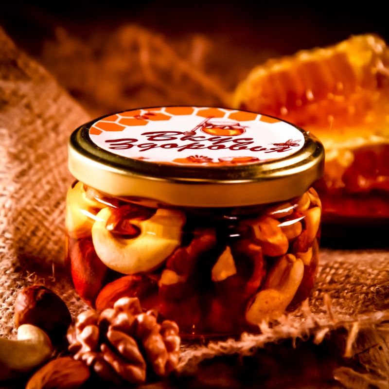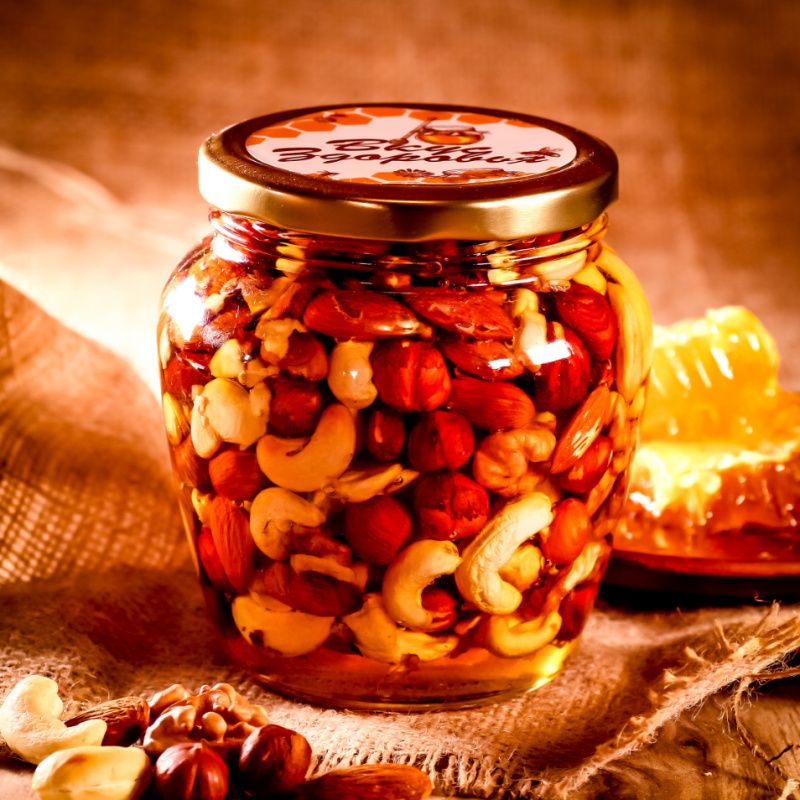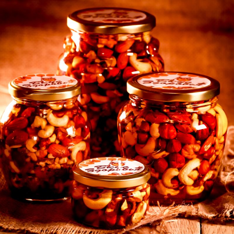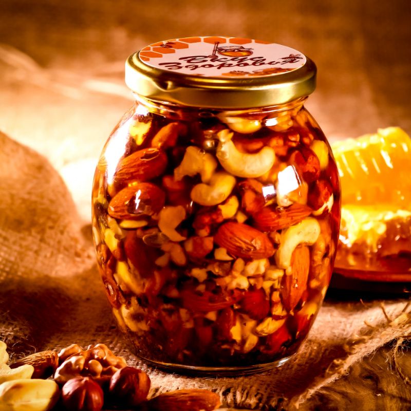 Микс орехов в меде Десерт, который учит чувствовать и замедляться Состав: кешью, миндаль, грецкий орех, фундук, семена подсоняшника, семена тыквы, мед (в равной пропорции). Его хочется смаковать, почувствовать вкус, текстуру каждого орешка отдельно и насладиться их симфонией, под руководством сладкого дирижера - меда. Это похоже на то, как много различных, порой противоречивых, но таких волшебных, качеств сочетается в любимом человеке. Цены / ассортимент баночки: - 100 мл = 63 грн - 350 мл = 191 грн - 550 мл = 255 грн - 900 мл = 319 грн Всем приятного аппетита, живите здорово и счастливо! Доставка по всей Украине. есть опт По всем вопросам сотрудничества или дропшипинга пишите сюда.