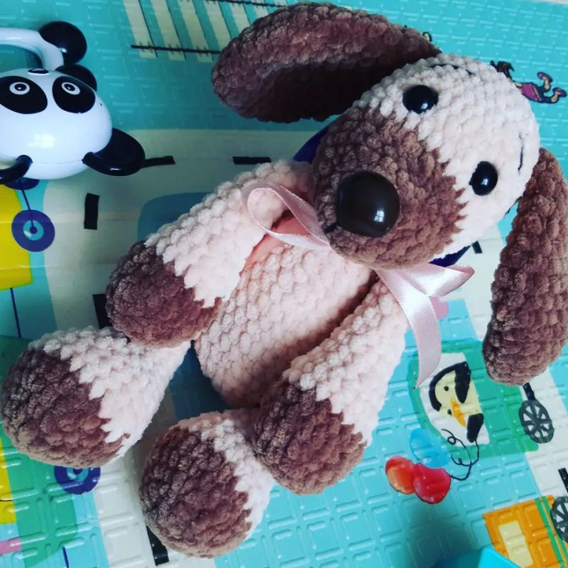 Рост собачка 25 см. Без ушек. Глазки и носик на безопасном креплении. С гипоаллергенной детской пряжи. К заказу доступны и другие игрушечные животные. Обращайтесь, буду рада помочь)