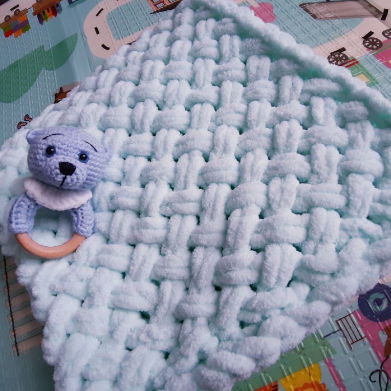 На фото набор из пледа, погремушку и игрушки Киса. Можно брать как отдельно, так и все вместе. Цена указана за пледик и погремушку. Все связано с гипоаллергенной детской пряжи. Очки, носик на безопасном креплении.