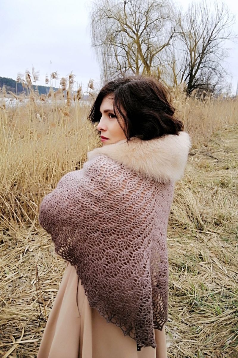Легкая, ажурная шаль крючком с эффектом омбре. Можно накинуть на плечи прохладным летним вечером, а также украсить свой образ осенью или весной.В таком цвете в наличии! На заказ в цвете на ваш выбор. Срок выполнения заказа 7 дней. Стоимость может незначительно меняться в зависимости от метража ниток, цвета (черными нитками на 20% дороже) и сложности узора. Шаль на фото выполнена нитками Alize Angora Gold Ombre (20% шерсть, 80% акрил). С одного мотка этих нитей получается шаль высотой 75 см, от края до края 150 см. Нить вмеру ворсистая, полотно лёгкое 150 грамм. Плавный переход цвета создаст неповторимый образ. Украсьте свою жизнь яркими красками, а я вам помогу в этом своей работой).