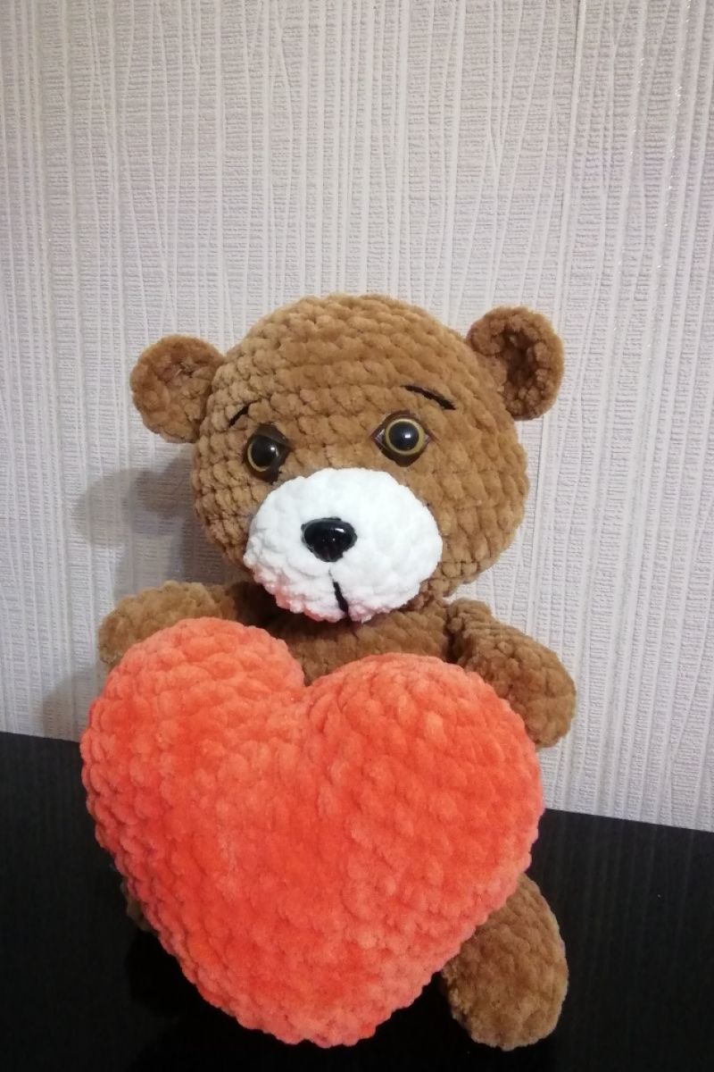 Маленький плюшевый медвежонок с большим и добрым сердцем. Отличный подарок для любимого человека. В таком цвете в наличии. На заказ возможен в других цвета (бежевый, белый, темно-коричневый)