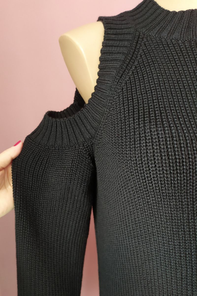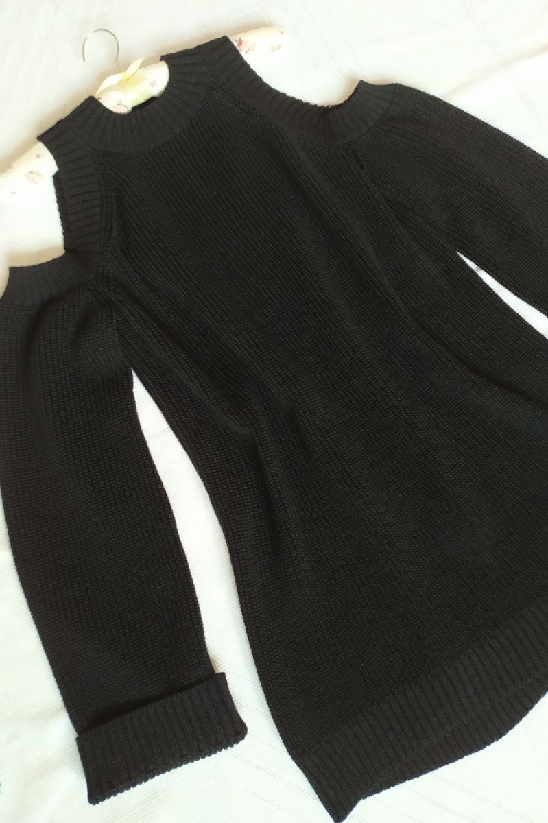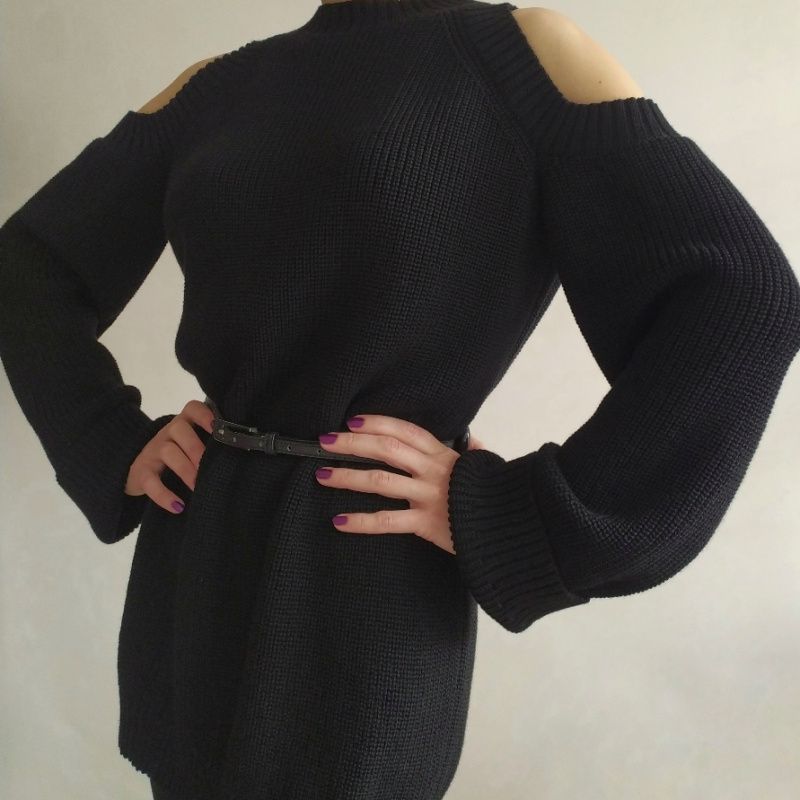 Свитер-платье с открытыми плечами, из 100% итальянского мериноса. Длина 75 см, ширина 48 см. Красивый черный цвет.