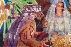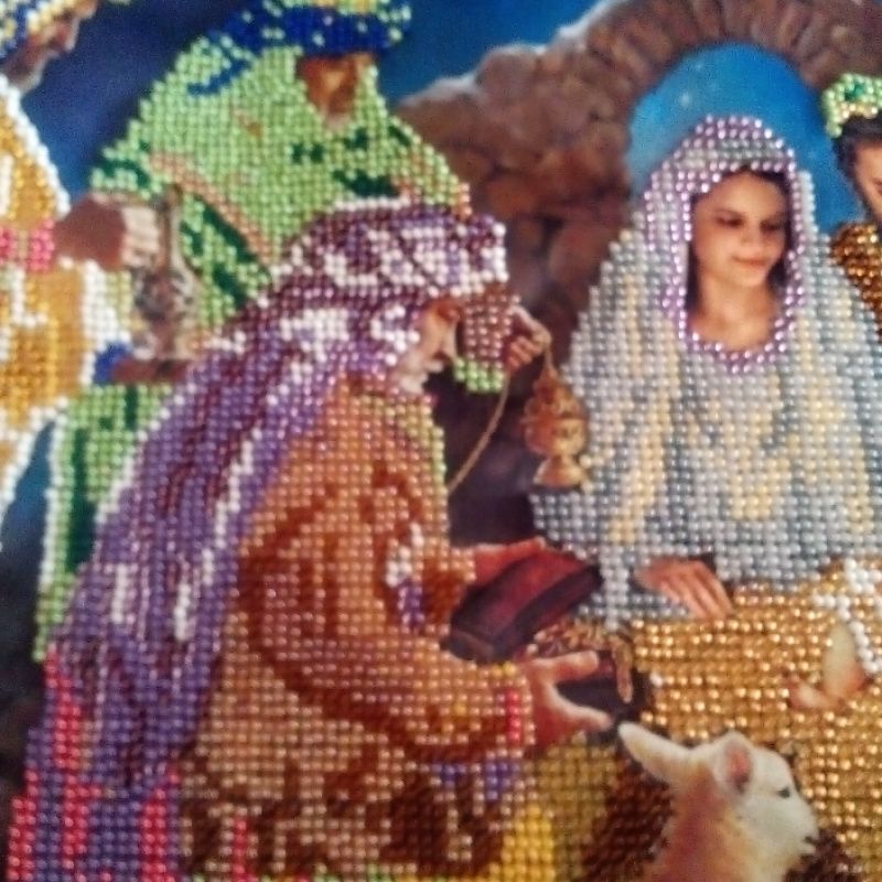 Картина,вышитая чешским бисером, без стеклянного покрытия, в рамке, можно вешать на стену. Название « Тайна Рождество Христова»