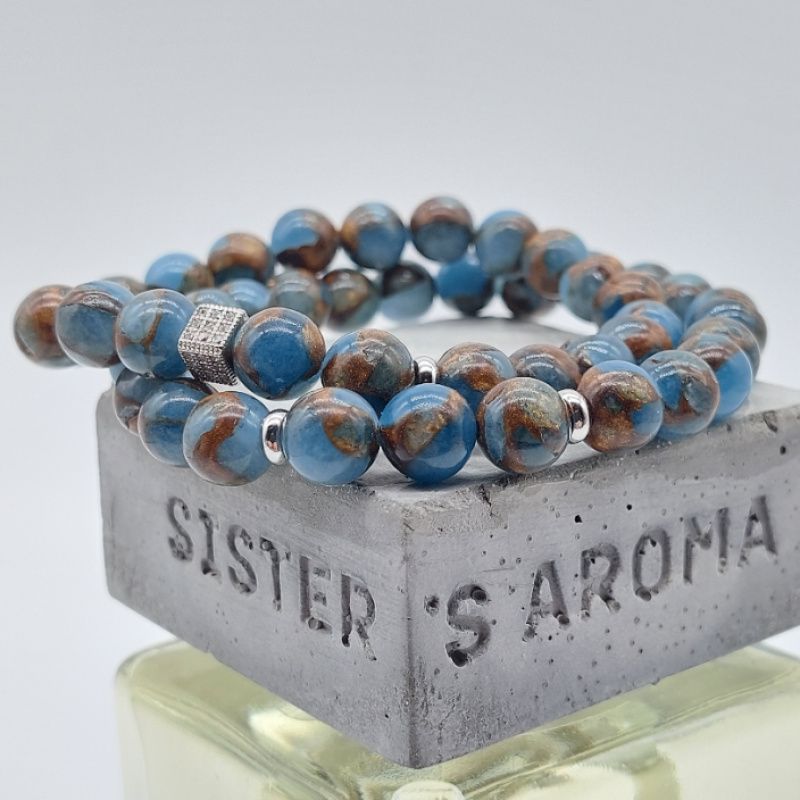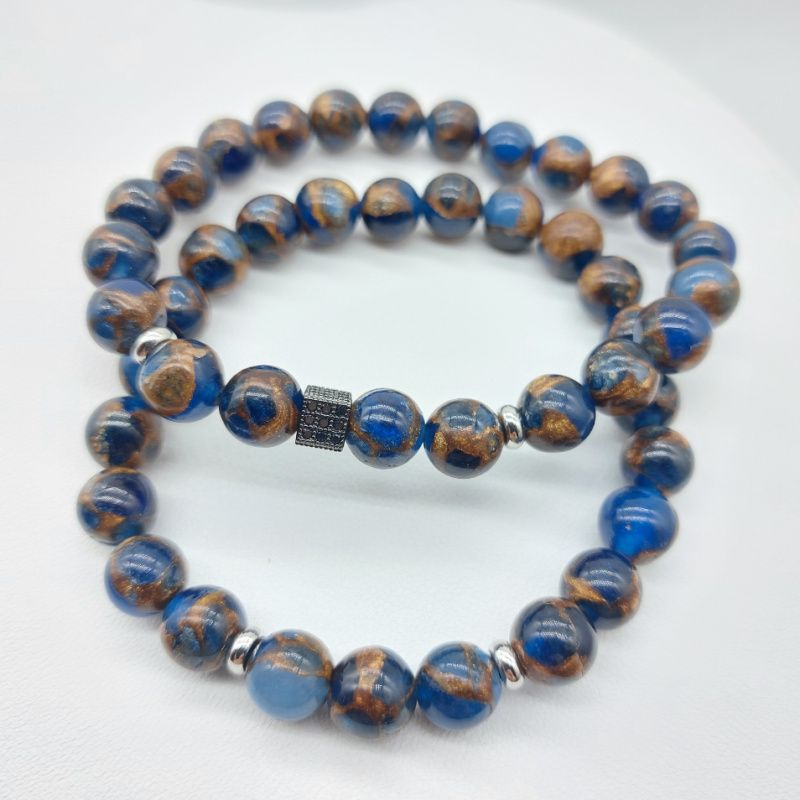 Парные браслеты из натурального камня Королевская Яшма 8мм с использованием инкрустированной фианитами гиппоаллергенной фурнитуры.