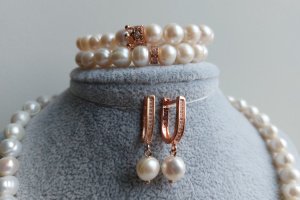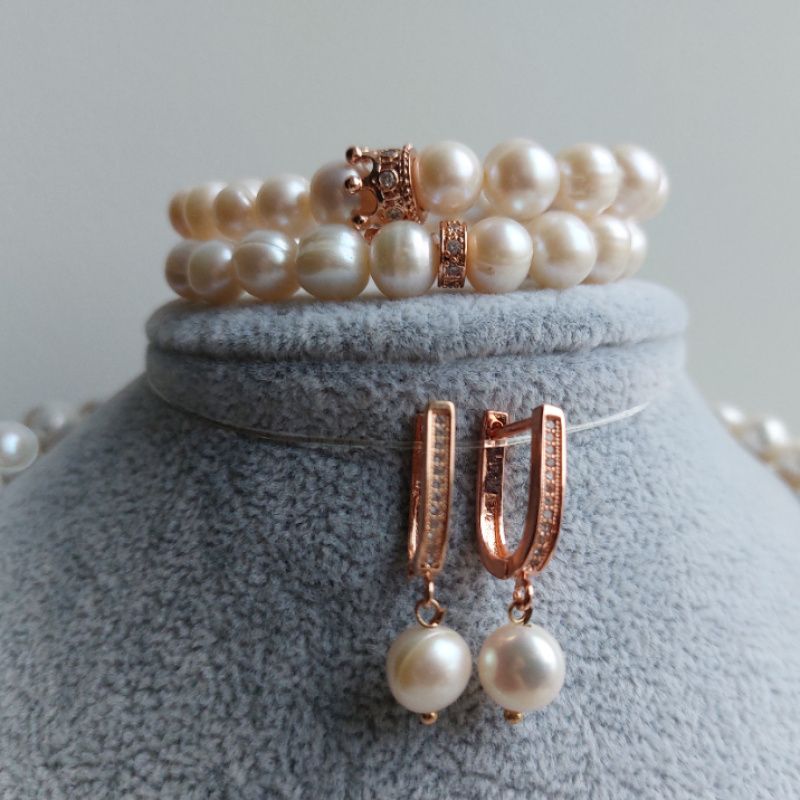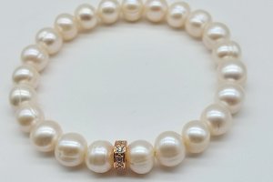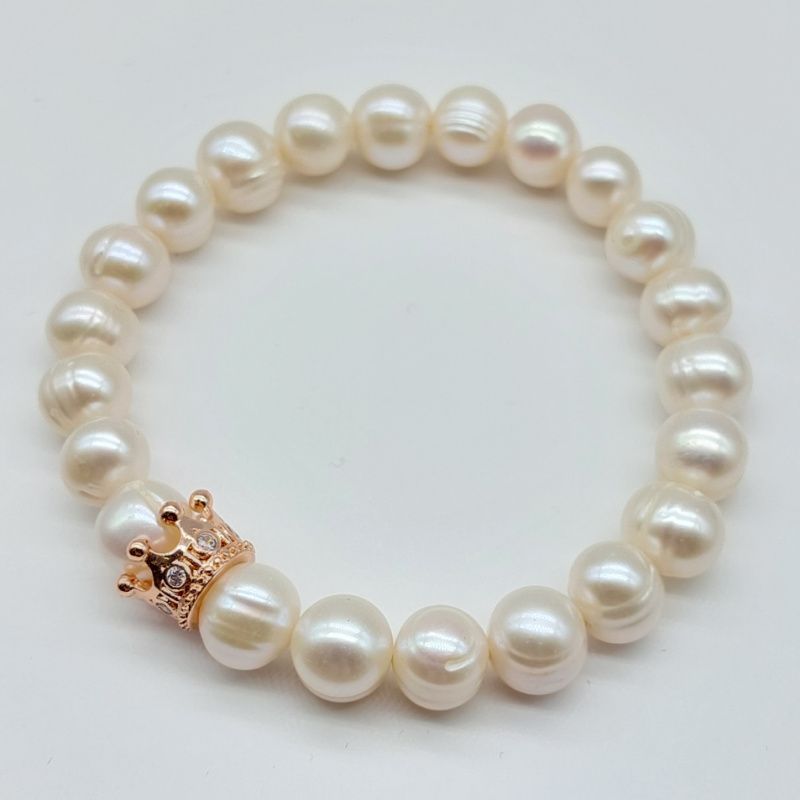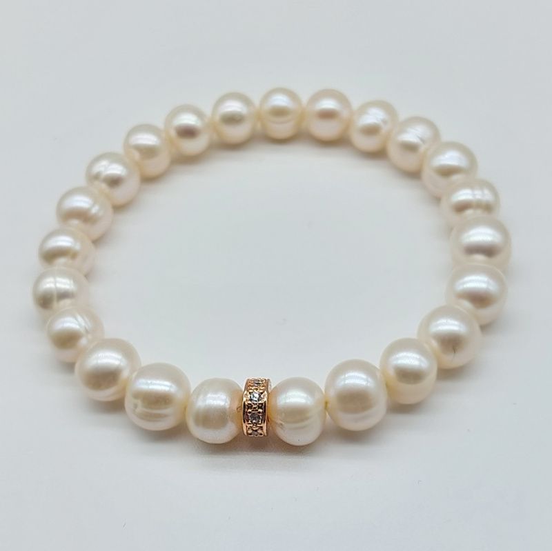 Парные браслеты из натурального жемчуга 8мм с использованием гиппоаллергенной фурнитуры инкрустированной фианитами.