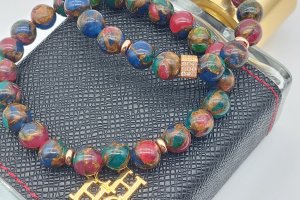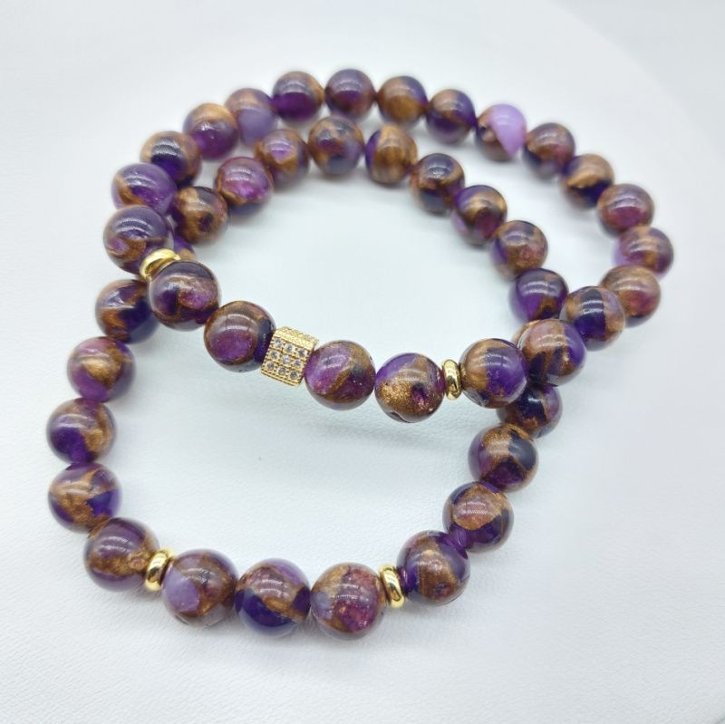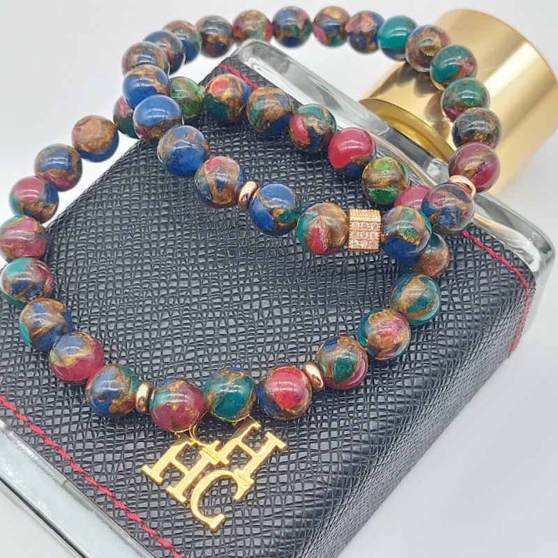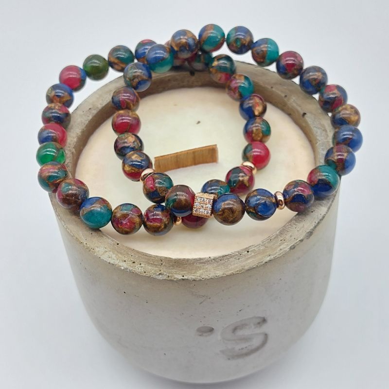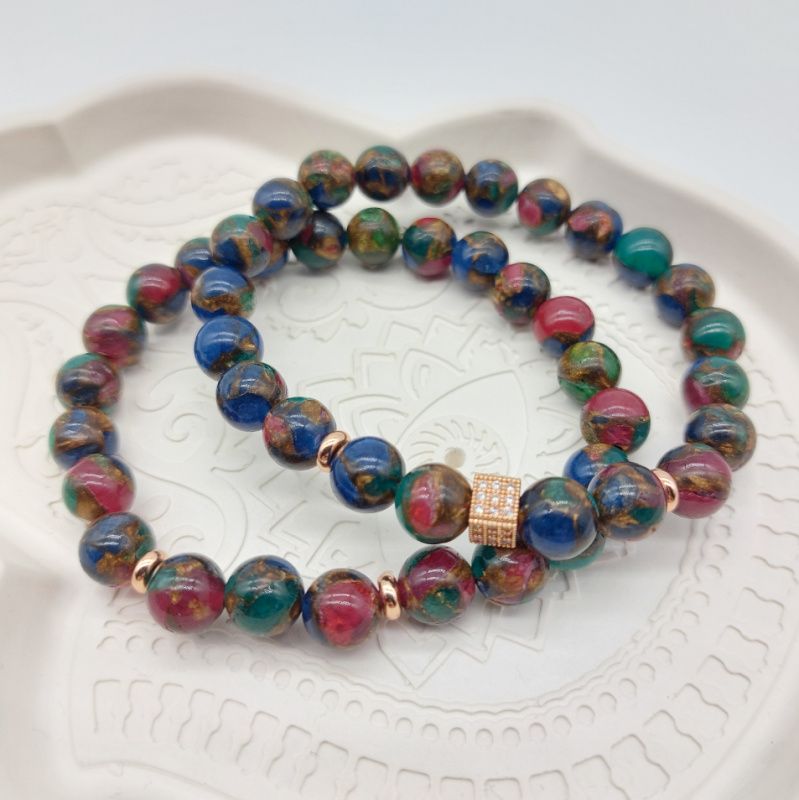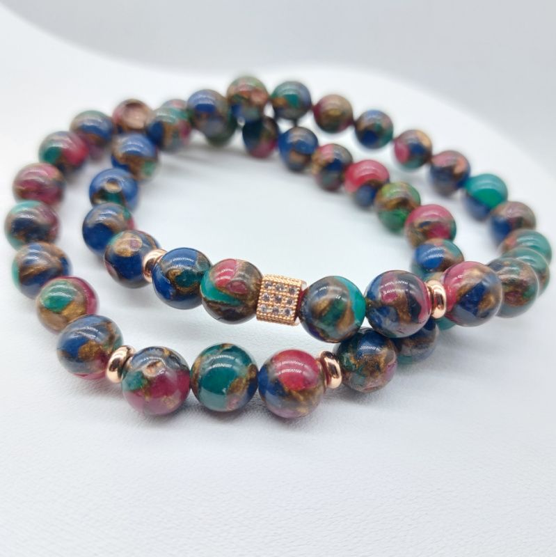 Парные браслеты из натурального камня Королевская Яшма 8мм с использованием инкрустированной гиппоаллергенной фурнитуры.