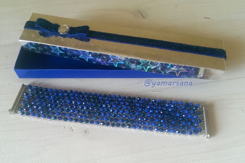 Браслет весь искрится и переливается при искусственном освещении или от солнечных лучей. Очень нарядное украшение!