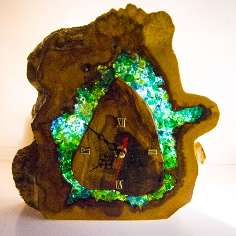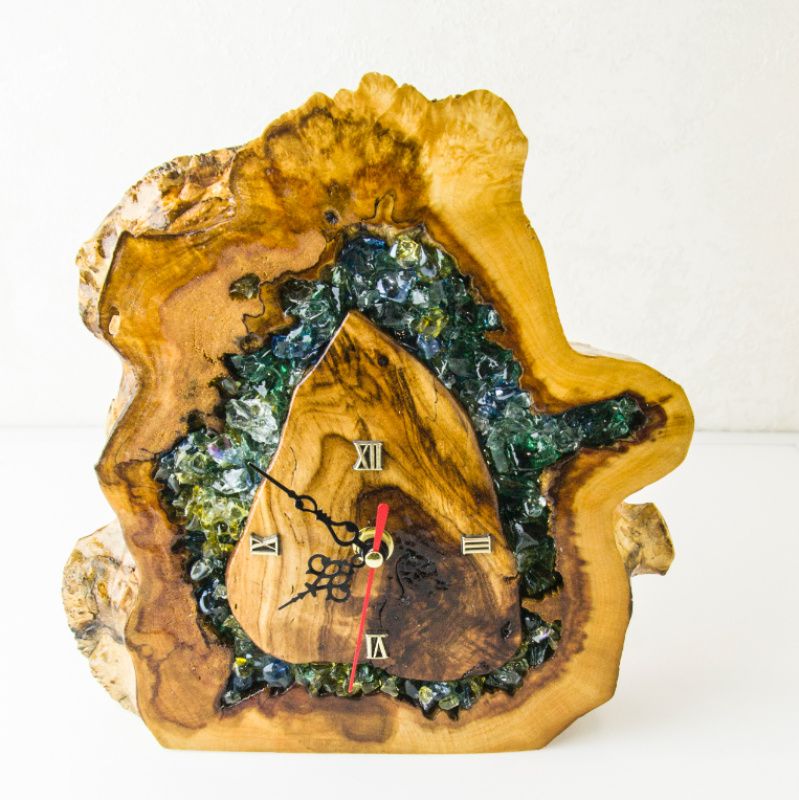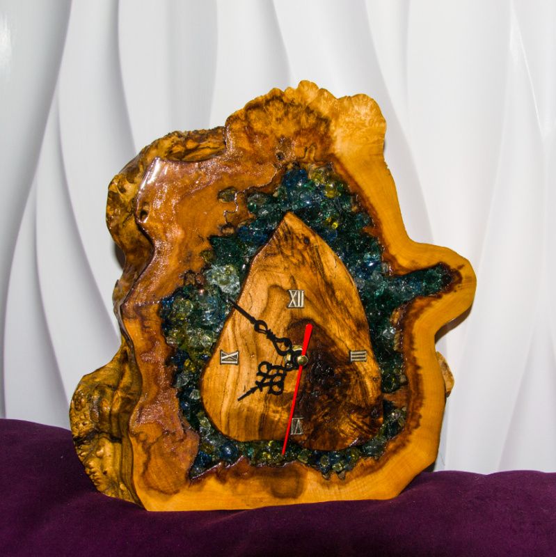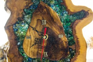 Если Вы ищете оригинальные часы себе или для подарка, то эта эксклюзивная модель, которая выполнена из спила цельного массива, станет замечательным выбором. Украшены стеклянными кристалами различного размера, формы и оттенка