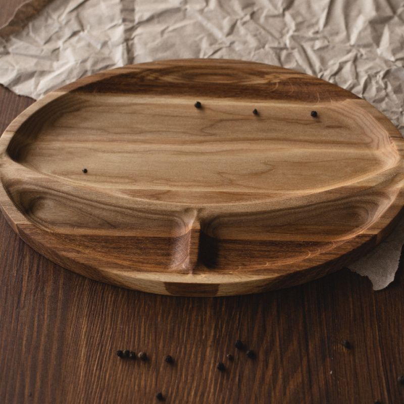 Тарелка-Менажница с массива дуба на 3 отделения, подойдет для подачи любой закуски