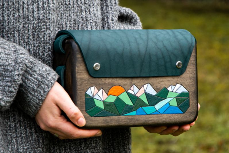 Деревянная сумочка "Горизонт" ... Очертания гор и солнце, пробуждает новый день, а может, и новую жизнь, вдохновили на несколько иначе