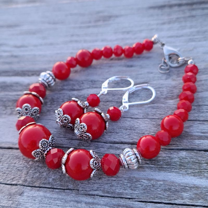 Браслет из прессованных кораллов. Длина браслета регулируется с помощью удлинительной цепочки. На других фото есть серьги, не входящие в стоимость, но также могут быть заказаны в комплекте или отдельно. В комплект можно сделать ожерелье или кулон на цепочке по вашим пожеланиям.