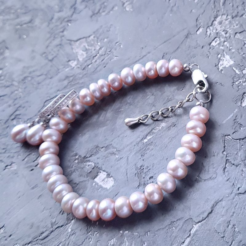Браслет из натурального жемчуга нежного лавандового цвета. Диаметр жемчужин в браслете: 7-6 мм. Прекрасный подарок для подруги, девушки, мамы, жены на день рождения, день влюбленных, 8 марта, и просто, чтобы напомнить, как сильно вы любите :) Очень красивые нежные жемчуг, которые сияют каким-то магнетическим светом: каждая жемчужина - как маленькое солнышко. По заказу я делаю любую длину браслета, необходимую покупателю. На других фото есть серьги, не входящих в стоимость, но могут быть заказаны отдельно. Могу изготовить браслет в серебре 925 пробы. К браслету также могу сделать ожерелье или кулон на цепочке в таком или ином дизайне. На последнем фото есть подарочная шкатулка из натурального дерева, не входит в стоимость, но может быть заказана отдельно.