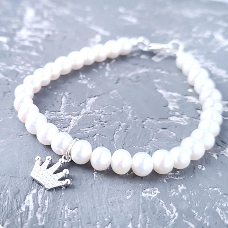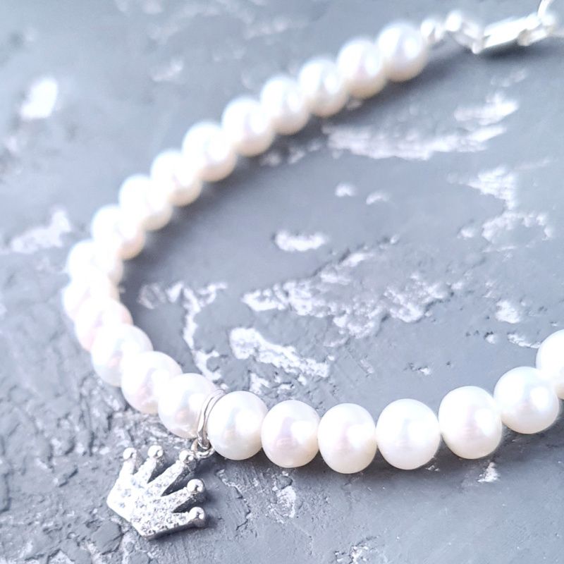 Браслет из натурального жемчуга с подвеской корона. Прекрасный подарок на 8 марта для мамы, девушки, сестры или подруги. Вся фурнитура в серебре 925 пробы - кулон а также застежка По заказу - любая, нужна вам длина колье. Стоимость указана за браслет как на фото. Размер жемчужин: 6-5 мм (по центру - крупные, на концах - меньше). Жемчужинки красивые, высокого качества, светятся. На других фото есть колье, не входит в стоимость, но также может быть заказано отдельно. На заказ к браслету также могу сделать серьги с подобными подвесками. На последнем фото есть праздничный футляр из натурального дерева, который не входит в стоимость, но может быть заказан отдельно.