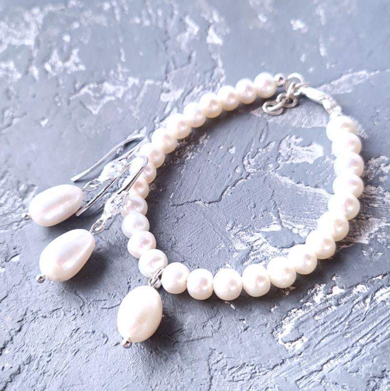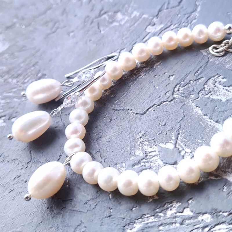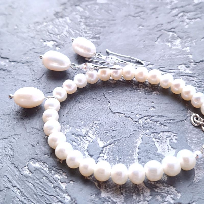 Браслет из натурального жемчуга высокого класса, с большой натуральной жемчужиной подвеской в форме капли - прекрасный подарок для вашей подруги, жены, мамы, сестры в день рождения, день влюбленных, 8 марта. Размер жемчужин: 6-5 мм (по центру - крупные, на концах - меньше). Длина браслета согласуется с покупателем, и регулируется с помощью удлинительного цепочки. В браслет установлена обычная металлическая застежка. По желанию: застежка и удлинитель млже быть сделан в серебре 925 пробы +150 грн. На других фото есть серьги, не входящих в стоимость, но могут быть заказаны отдельно. Также в комплект к браслету могу сделать серьги или ожерелье и кристаллов. На последнем фото есть праздничный футляр из натурального дерева, который не входит в стоимость, но может быть заказан отдельно.