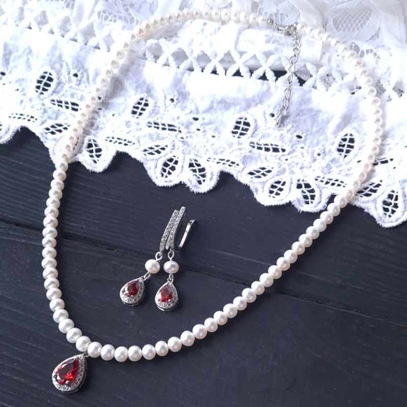 Комплект украшений из натурального белого жемчуга: колье и серьги. Застежки сережек – серебро 925 пробы, английский замок, инкрустированные кристаллами циркона. Застежка колье и удлинитель - серебро 925 пробы. Стоимость указана за комплект как на фото. Размер жемчужин в ожерелье: 6-5 мм (по центру – более крупные, на концах – меньшие). По заказу я делаю любую, нужную покупателю длину колье. Стоимость указана за колье, длиной 40 см плюс 5 см удлинительную цепочку и серьги.