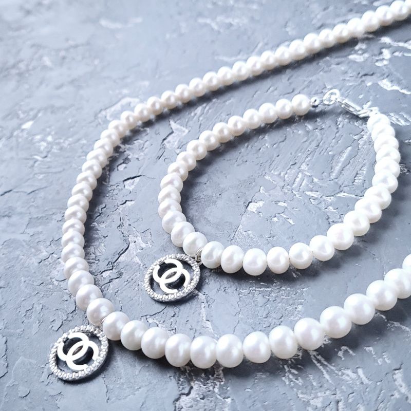 Колье с натуралних жемчуга с подвеской. Вся фурнитура в серебре 925 пробы - кулон а также застежка По заказу - любая, нужна вам длина колье. Стоимость указана за длину колье как на фото: 40 см. Размер жемчужин: 6-5 мм (по центру - крупные, на концах - меньше). Жемчужинки красивые, высокого качества, светятся. На других фото есть браслет, не входит в стоимость, но также может быть заказан отдельно. На заказ к колье также могу сделать серьги с подобными подвесками. На последнем фото есть праздничный футляр из натурального дерева, который не входит в стоимость, но может быть заказан отдельно.