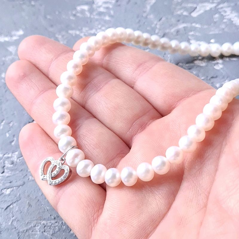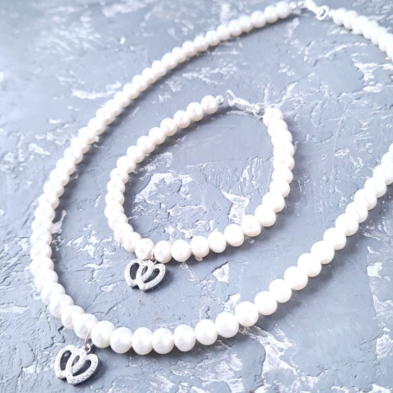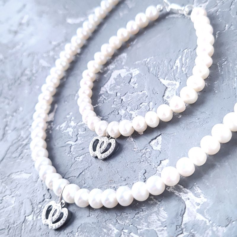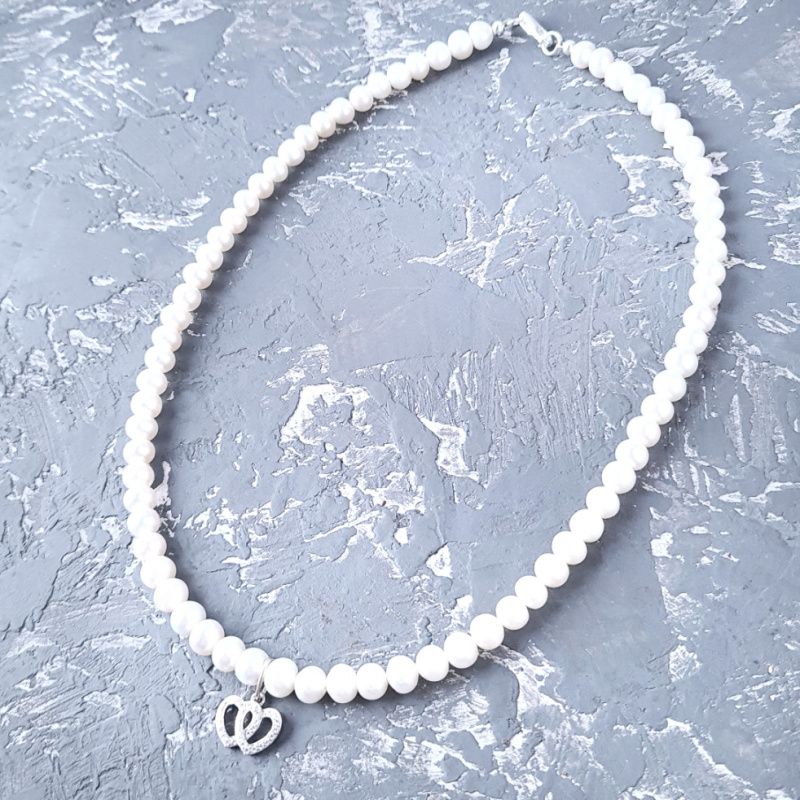 Колье из натурального жемчуга с подвеской в форме 2 сердец - лучший подарок на день влюбленных или 8 марта для девушки или жены. Вся фурнитура в серебре 925 пробы - кулон а также застежка По заказу - любая, нужна вам длина колье. Стоимость указана за длину колье как на фото: 40 см. Размер жемчужин: 6-5 мм (по центру - крупные, на концах - меньше). Жемчужинки красивые, высокого качества, светятся. На других фото есть браслет, не входит в стоимость, но также может быть заказан отдельно. На заказ к колье также могу сделать серьги с подобными подвесками. На последнем фото есть праздничный футляр из натурального дерева, который не входит в стоимость, но может быть заказан отдельно.