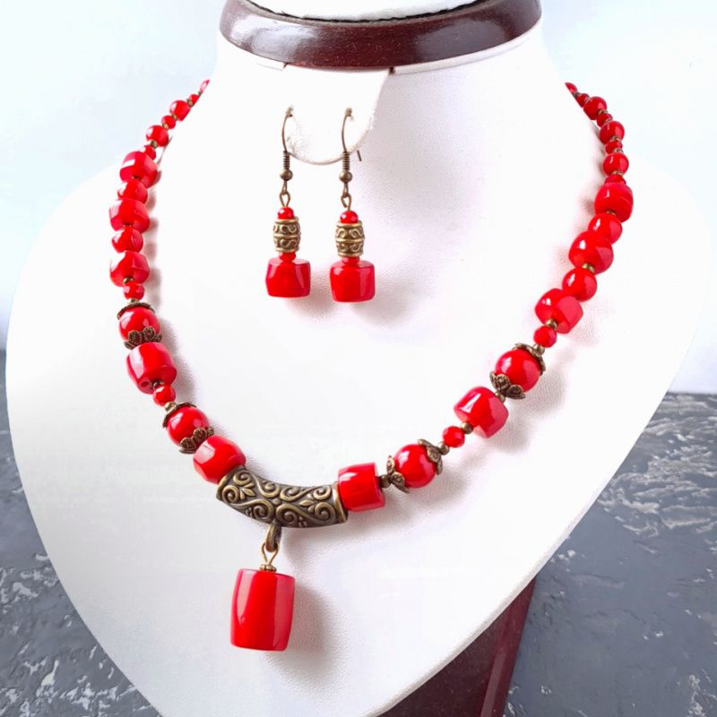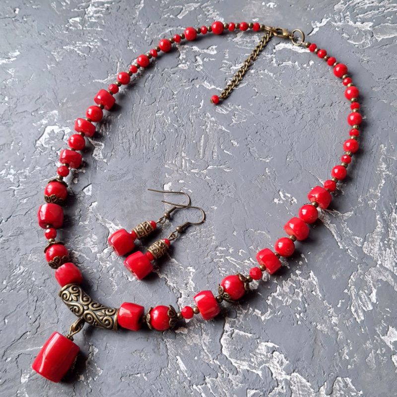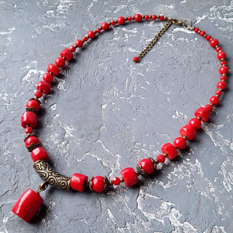 Колье с натуральными кораллами и искусственными кораллами, с подвеской большого натурального коралла. Длина колье согласовывается при оформлении покупки. Стоимость указана с учетом базовой длины ожерелья 45 см + 5 см удлиняющий цепочку. Если вам нужна другая длина - стоимость будет пересчитана в соответствии с нужной длины. На других фото есть серьги, не входящих в стоимость, но могут быть заказаны отдельно. На последнем фото есть праздничный футляр из натурального дерева, который не входит в стоимость, но может быть заказан отдельно.